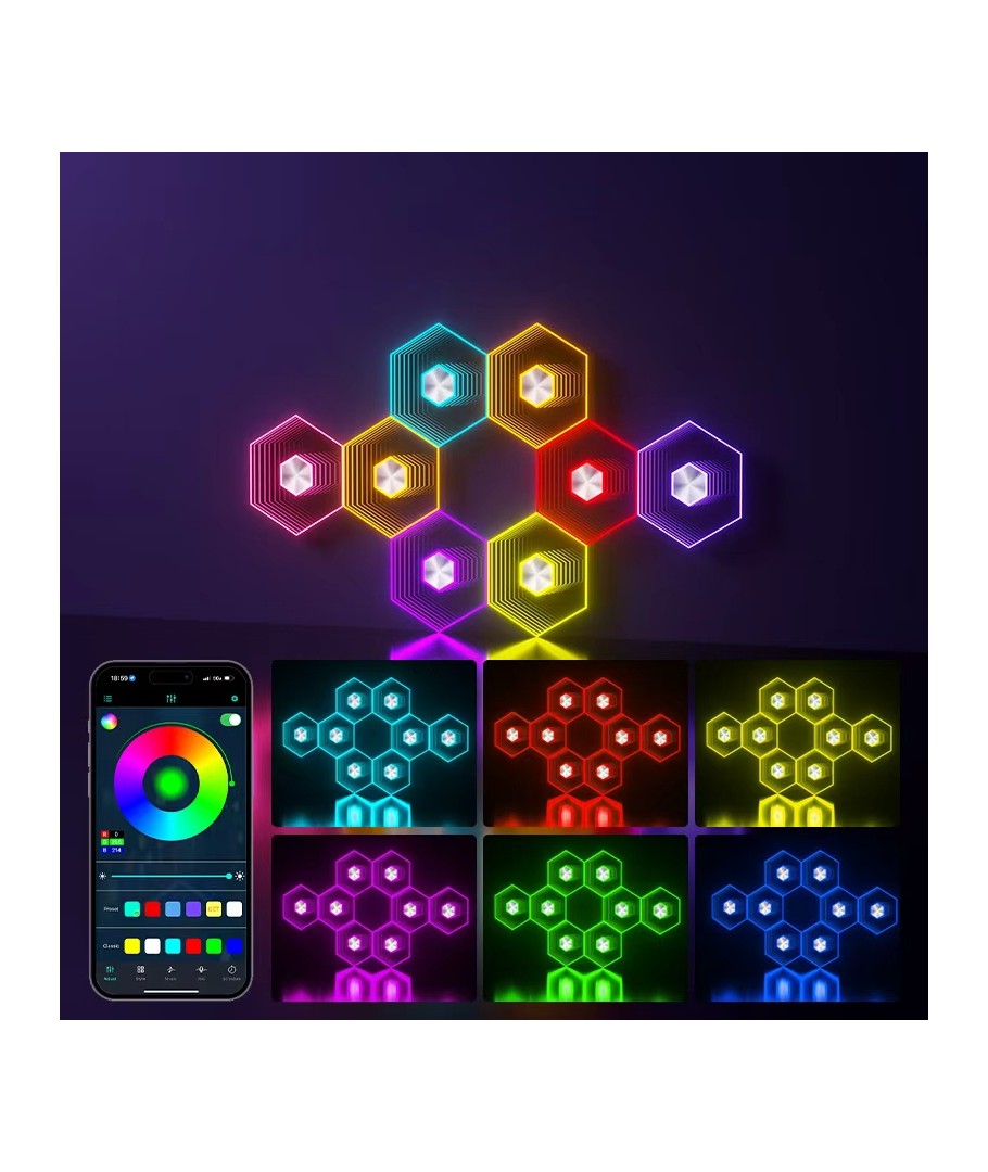 Bring dine vægge til live med RGBIC Hexagon Infinity Væglys og oplev en belysningsløsning, der både er praktisk og æstetisk tiltalende. Skab dit personlige lysunivers i dag!