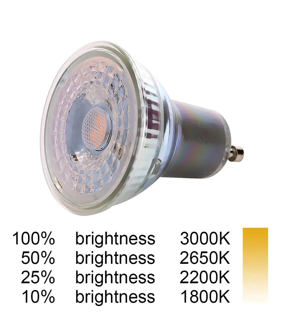 DimToWarm spot gør lyset varmere fra 3000 kelvin til 1800 kelvin, når lyskilden dæmpes.