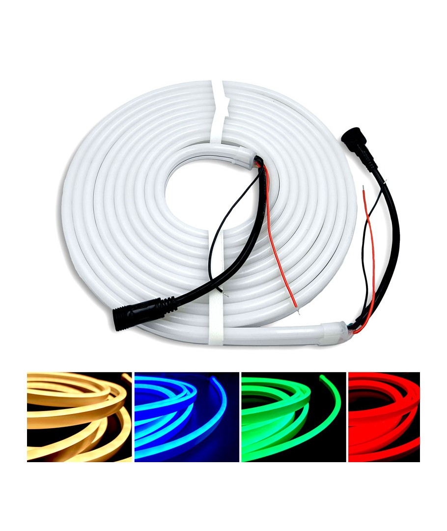 Tilslut nemt Neon Flex Strip til en 24V DC forsyning for pålidelig og sikker energitilførsel. Den er let at montere takket være dens slanke dimensioner på 8 x 16 mm, hvilket gør den ideel til både små og store projekter.