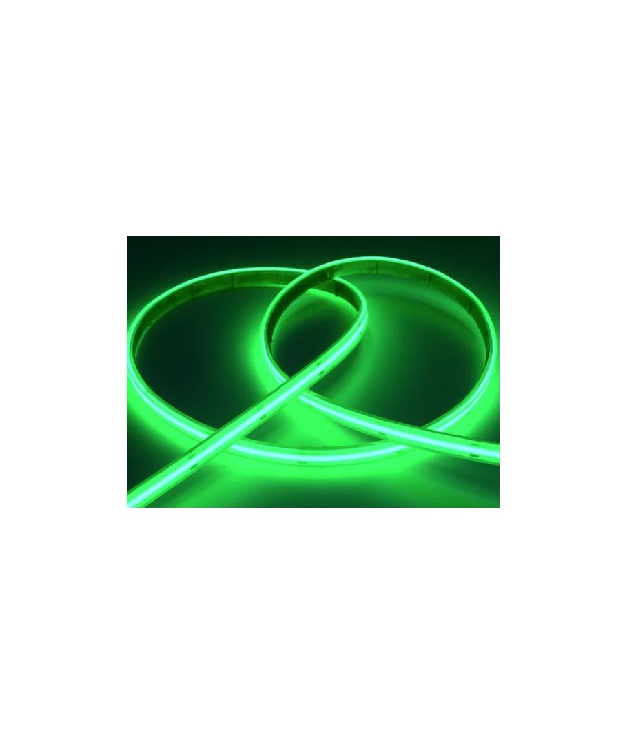 Denne COB LED strip giver et jævnt og uafbrudt lys uden synlige mellemrum, takket være de 320 LED'er pr. meter. LED strippen giver et flot grønt lys, som er ideel til både dekorativ og praktisk belysning.