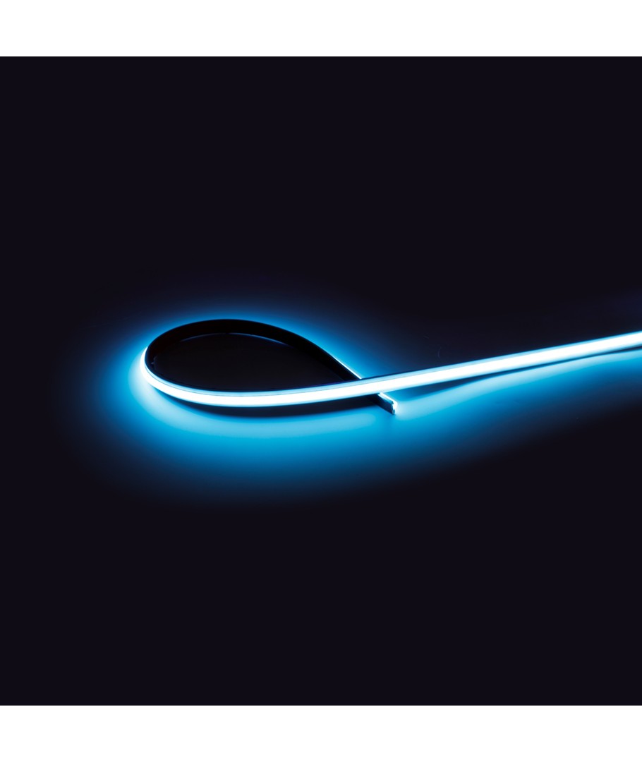 Med denne lyseblå COB-LED strip bringer du en moderne og elegant belysning til dit hjem eller kontor. Den er hævet i kvalitet med 240 LED pr. meter, hvilket giver en dot-free lyskilde, der sikrer et kontinuerligt og behageligt lys.