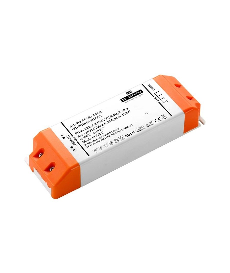 Dæmpbar kvalitets LED driver fra Snappy på 1-150W som leverer en konstant spænding på 24V DC - Driveren er perfekt til dæmpning af 24V LED bånd/strip. Kan ikke anbefales til LED pærer.