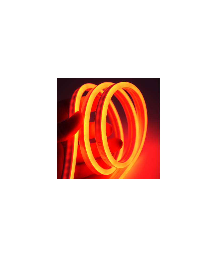 Oplev fleksibel belysning med denne Neon Flex LED strip, der bringer en stærk og livlig orange glød til ethvert rum. Perfekt til såvel indendørs som udendørs brug, takket være dens holdbare og pålidelige design.