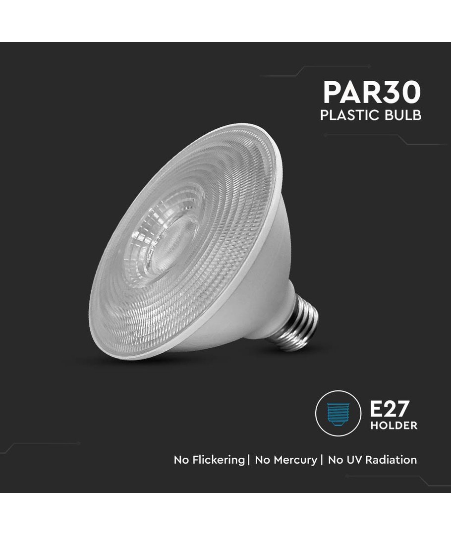 V-Tac 11W PAR30 LED pære kombinerer avanceret chips fra Samsung med energieffektiv belysning, der passer til enhver E27 fatning.