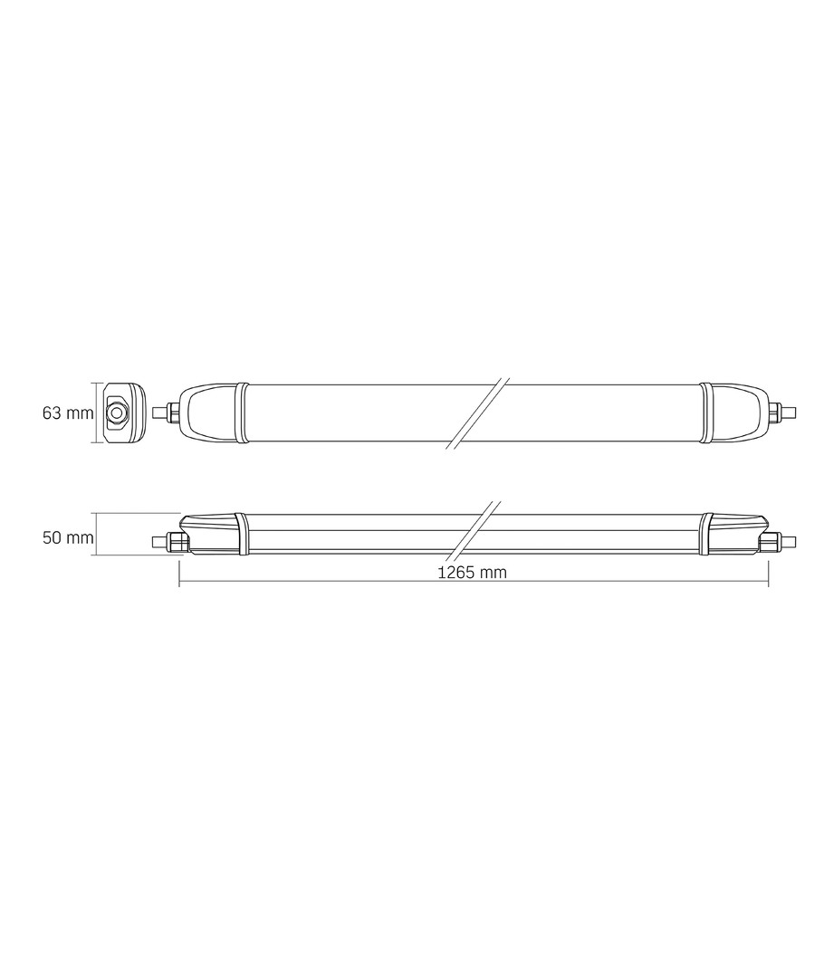 Med dimensioner på 63 x 1265 x 50 mm og en IP65 klassificering, er denne lampe perfekt til udendørs brug. Den er sammenkoblingsbar og kan modstå både vandstænk og regn.