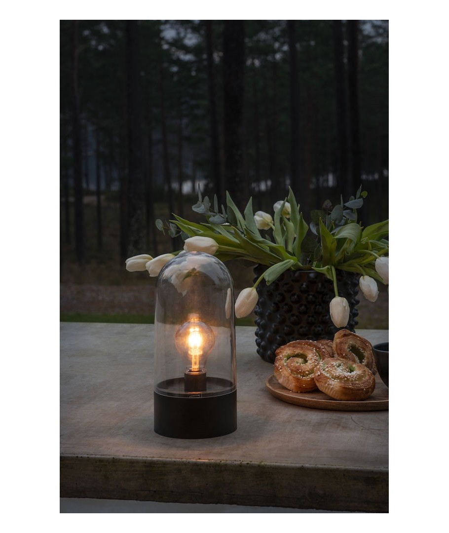 Enkel batteri LED bordlampe til inde- og udendørs brug fra Konstsmide. Leveres med timer funktion, så den kan kører 6 timer og være slukket 18 timer.