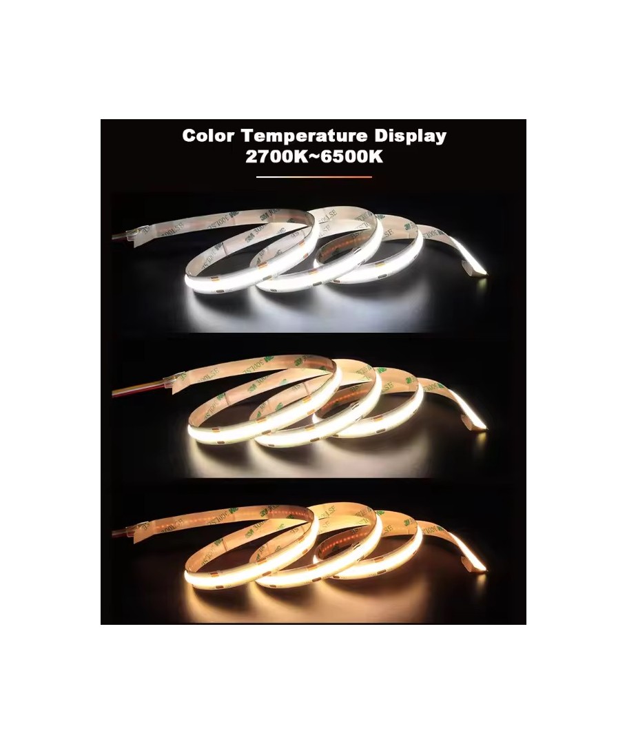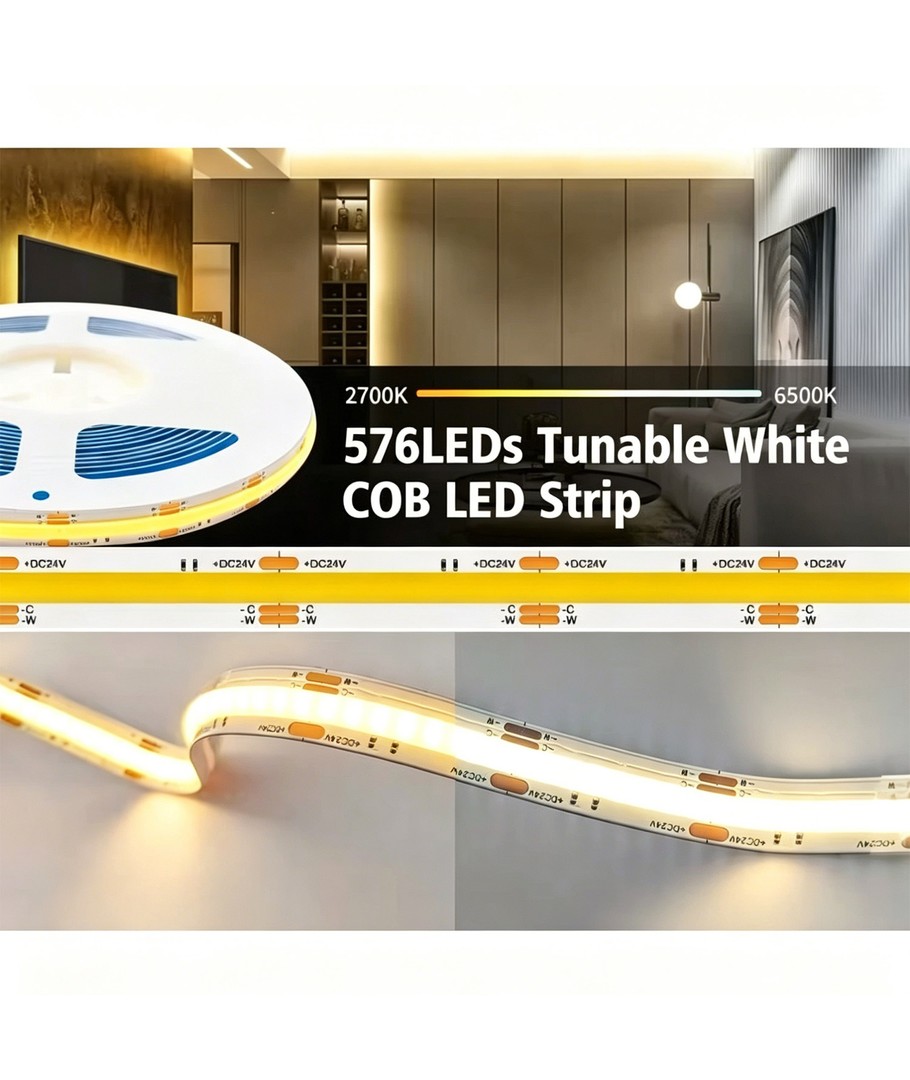 5 meter CCT justerbar COB LED strip med 608 LED'er per meter med høj RA værdi.