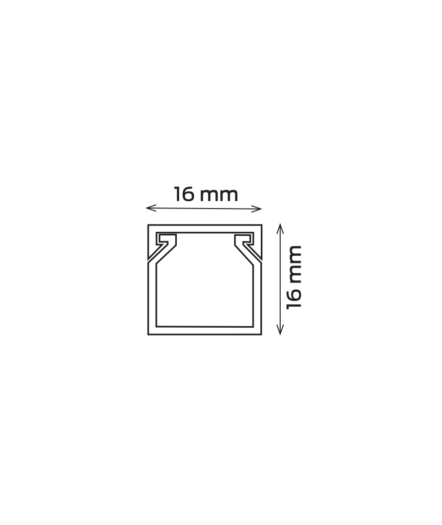 Hvid kabelkanal/kabelbakke på 2 meter som måler 16 mm i bredden og 16 mm i højden.