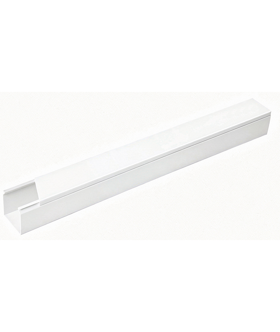 Hvid kabelkanal/kabelbakke på 2 meter som måler 40 mm i bredden og 40 mm i højden.