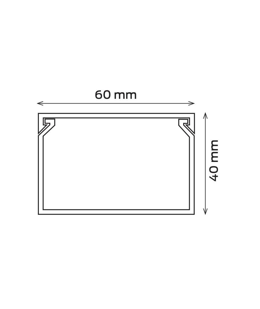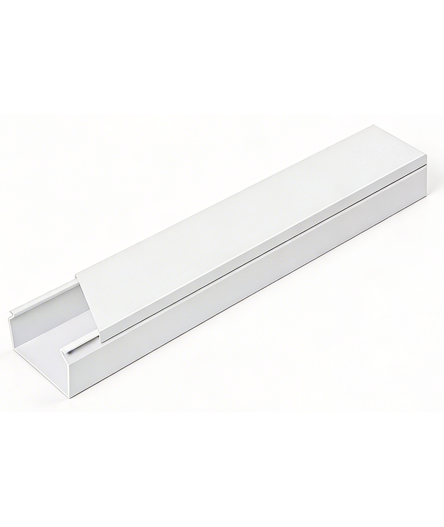 Hvid kabelkanal/kabelbakke på 2 meter som måler 60 mm i bredden og 40 mm i højden.