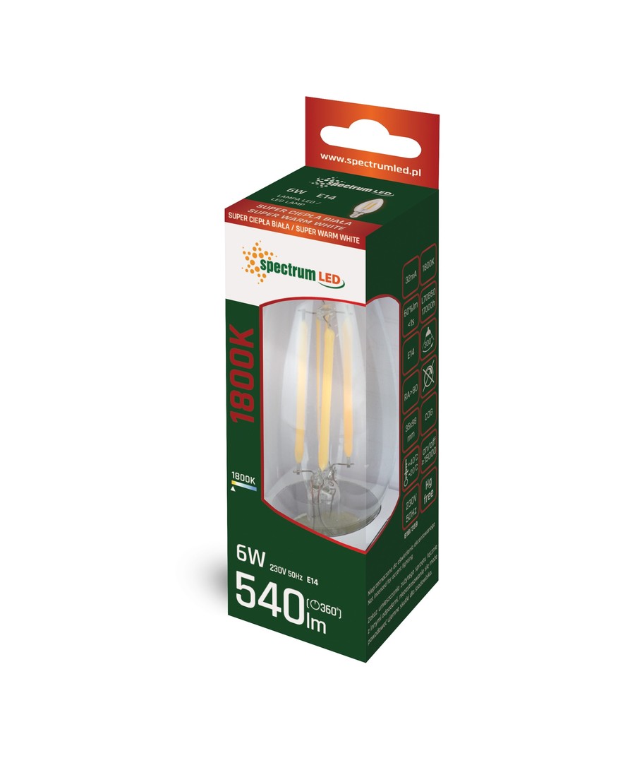 Den Spectrum 6W LED pære er det perfekte valg for dem, der ønsker at kombinere moderne energieffektivitet med klassisk stil. Den ekstra varme, hyggelige belysning bringer minder om de gammeldags glødetrådspærer og skaber en indbydende stemning i ethvert rum.
