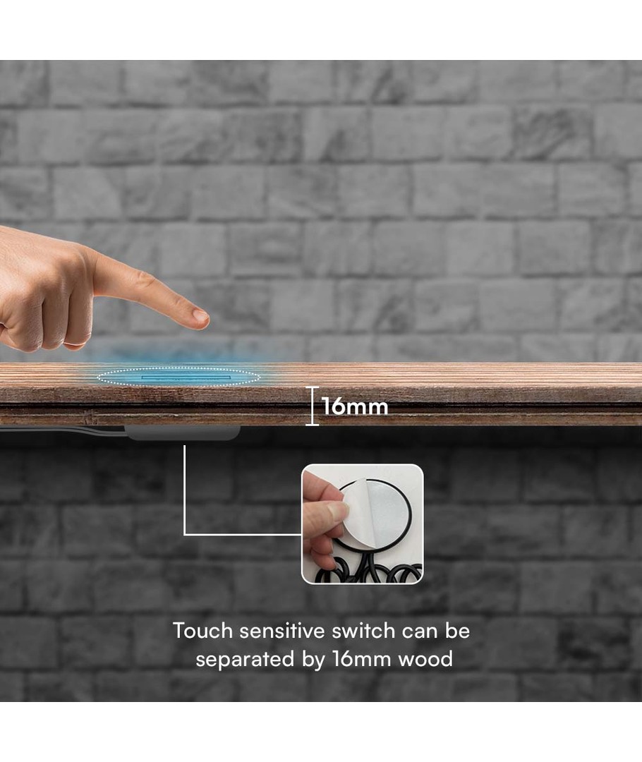 Kan placeres under bordplade og stadig virke / aktiveres på overfladen.