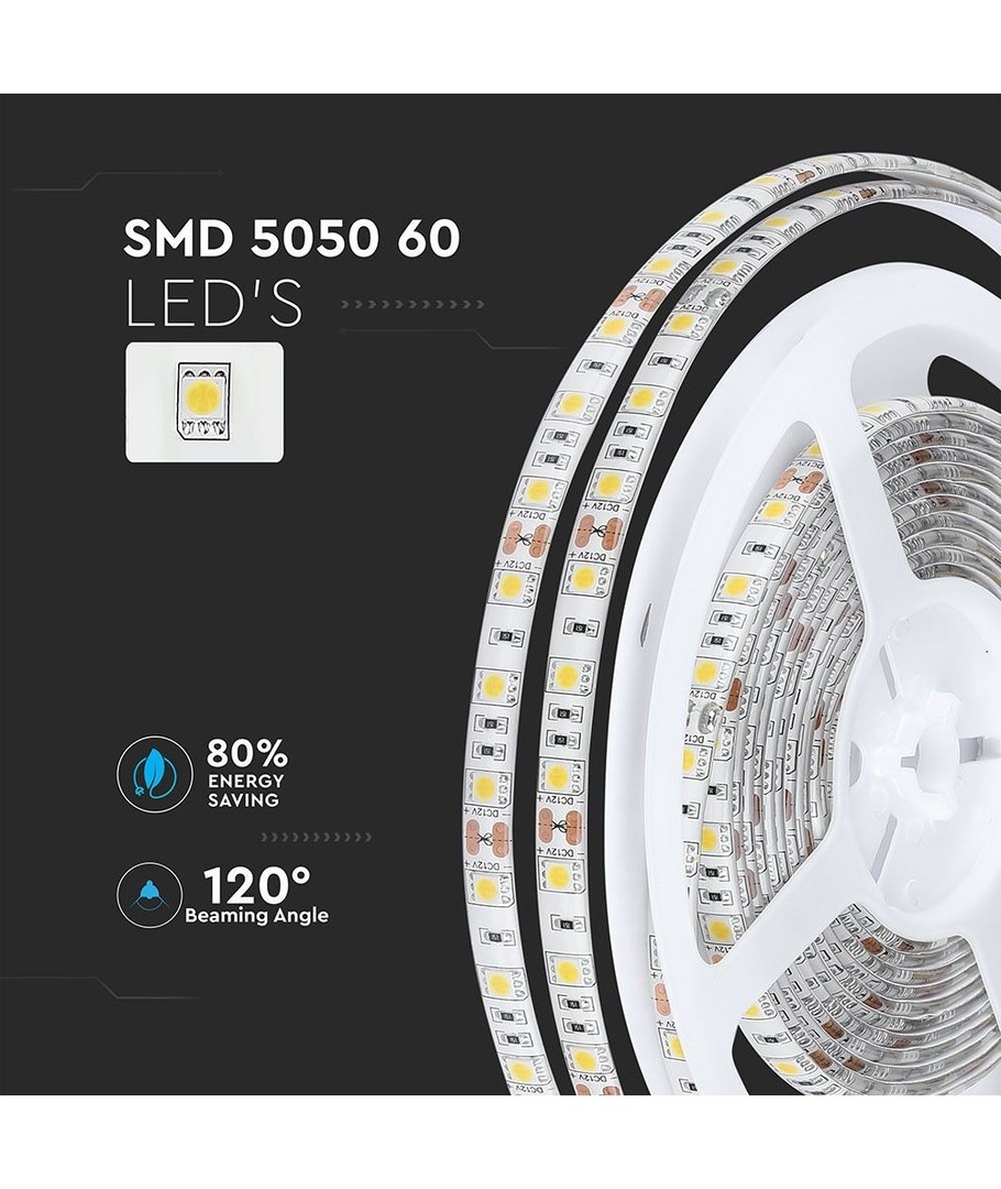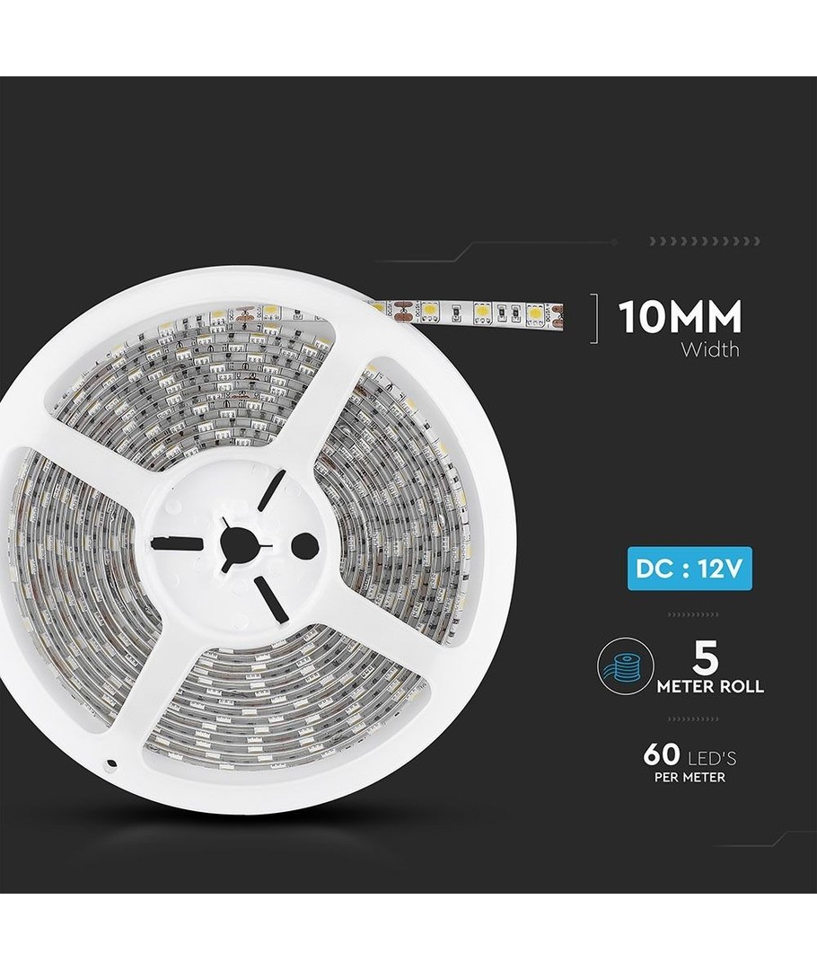 Oplev alsidigheden og den høje kvalitet med denne 5 meter lange, stænktætte LED strip. Med en lysstyrke på 900 lumens/meter og en bred spredning på 120 grader, sikrer den en jævn fordeling af lyset, ideel til en række belysnings behov.