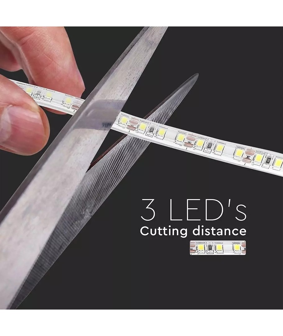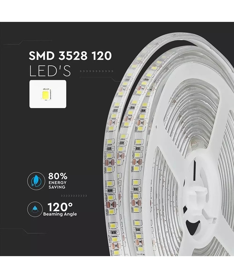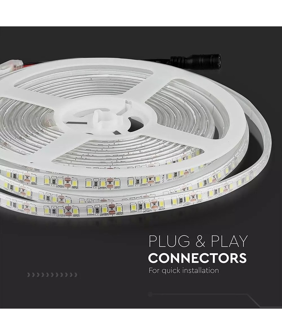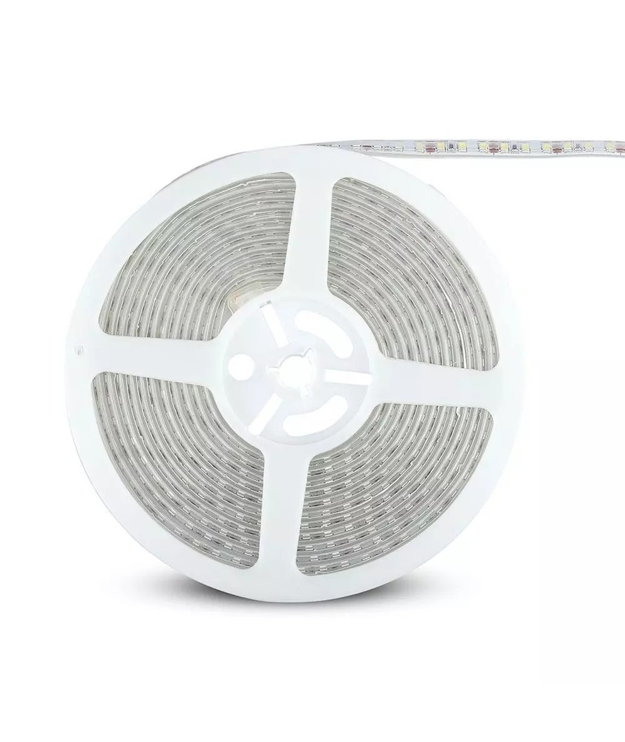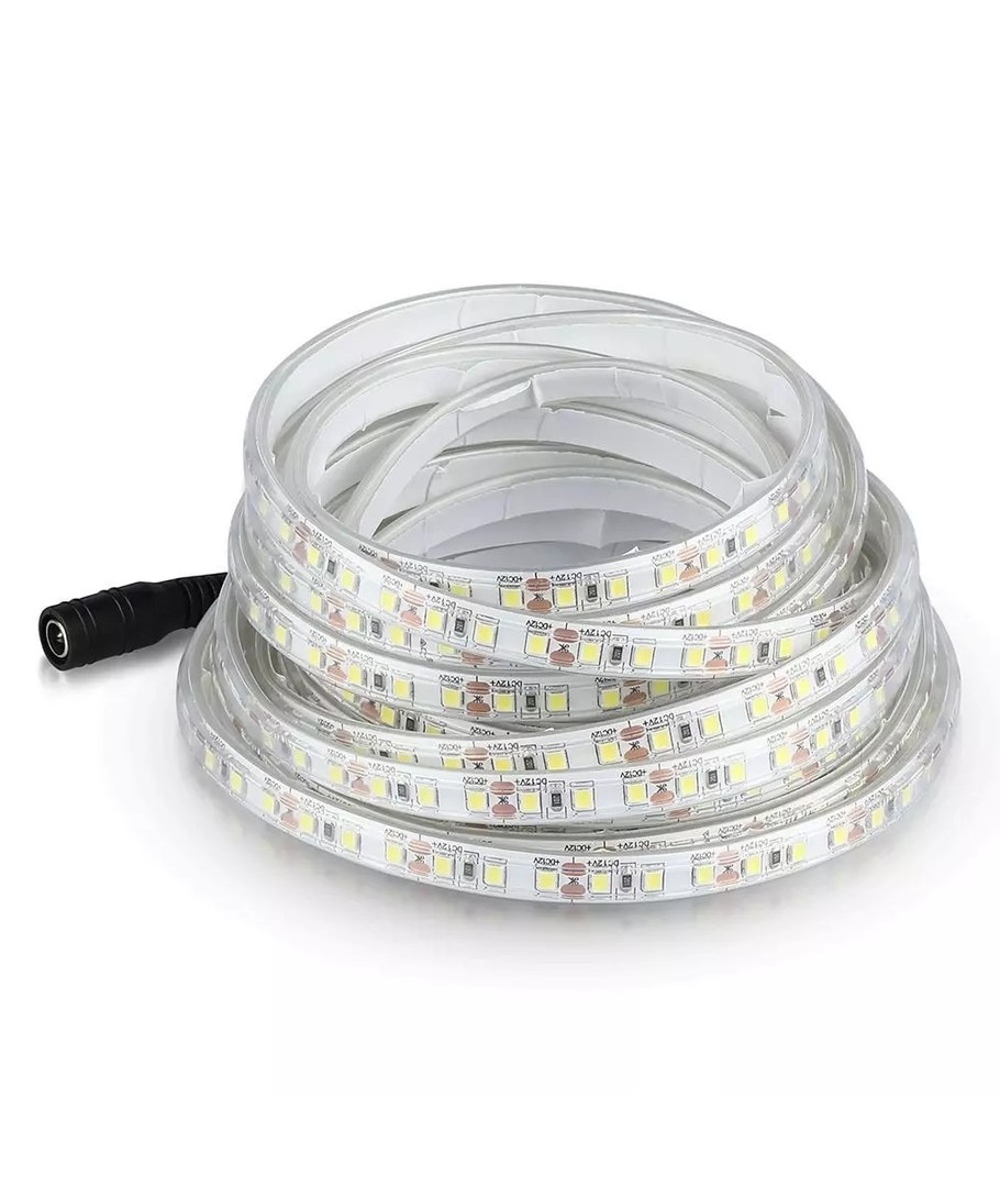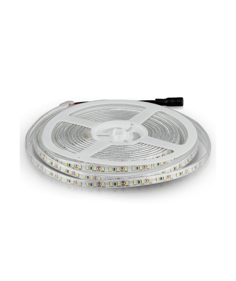 Oplev en alsidig og kraftfuld belysningsløsning med vores 5 meter stænktætte LED strip. Denne strip leverer en konstant lysstyrke på 600 lumens/meter med en forbrugseffekt på 7,2W/meter. Perfekt til både indendørs og udendørs brug takket være dens IP65 klassificering, hvilket gør den modstandsdygtig over for vandstænk og regn.