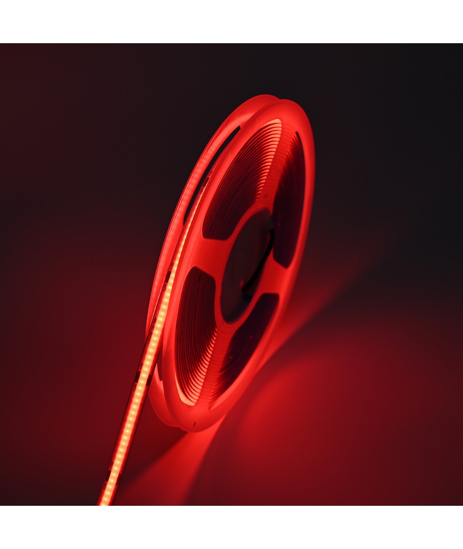 Enkeltfarvet rød COB LED strip med 320 LED'er per meter.