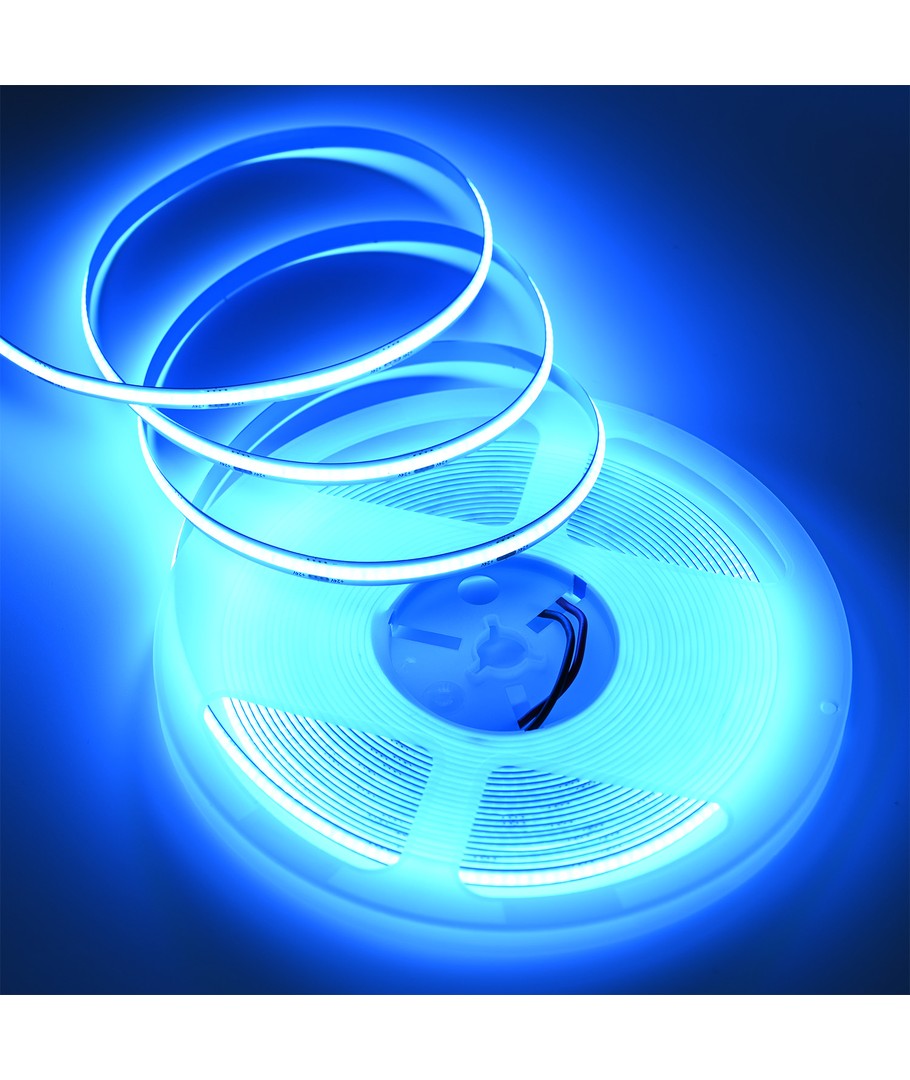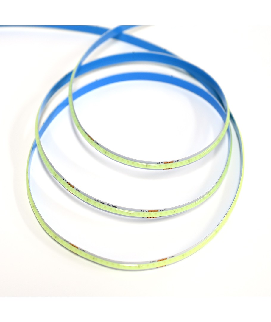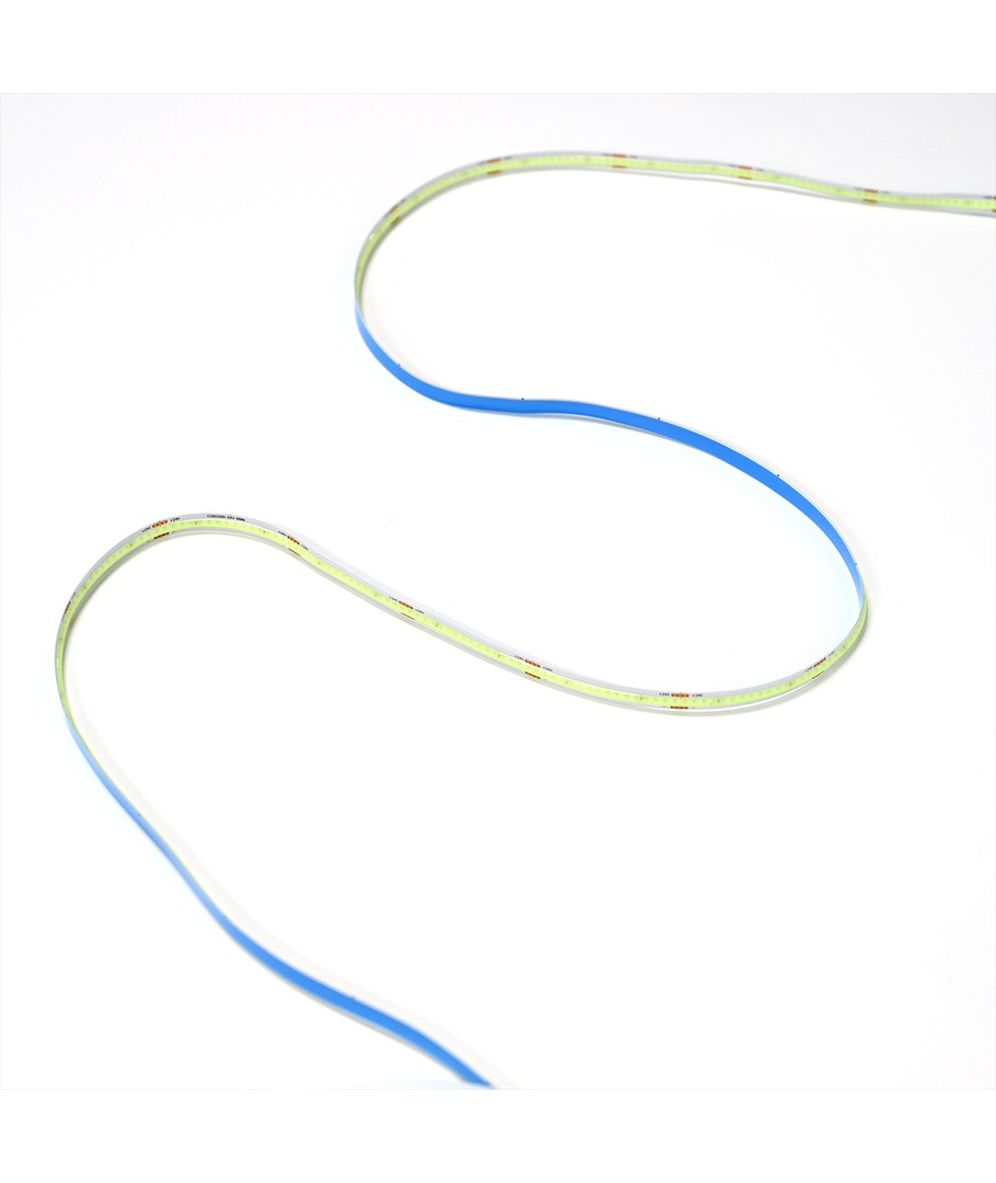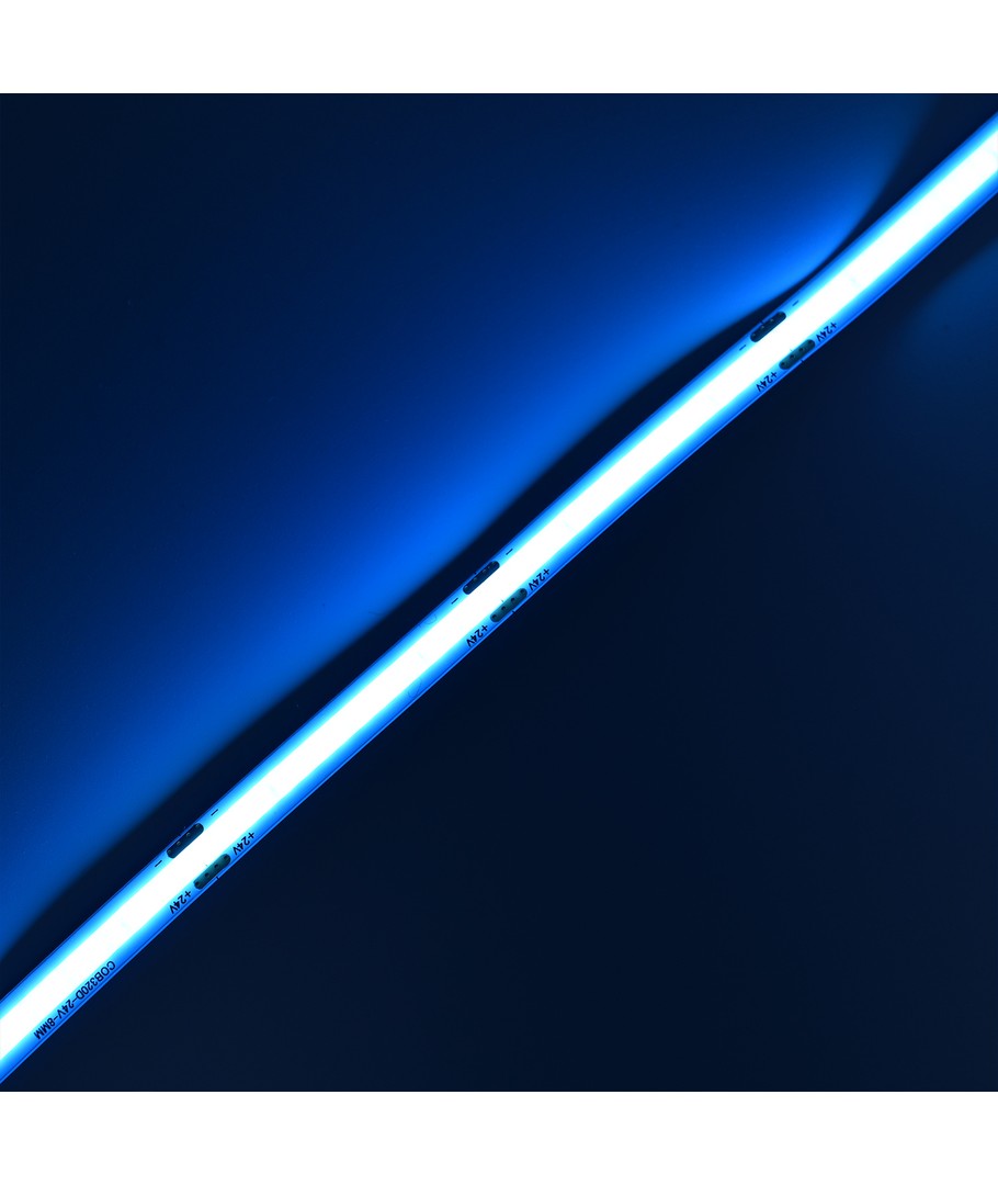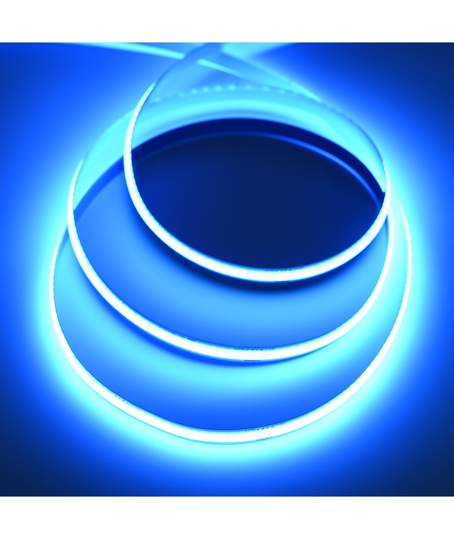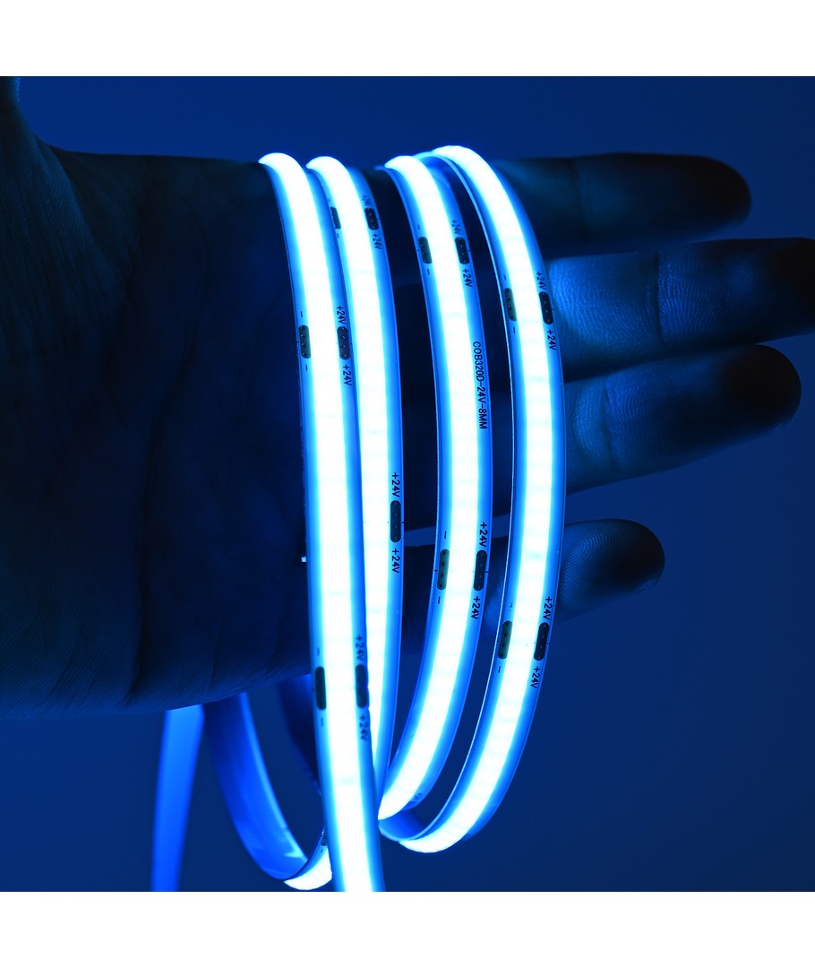 Enkeltfarvet lyseblå COB LED strip med 320 LED'er per meter.