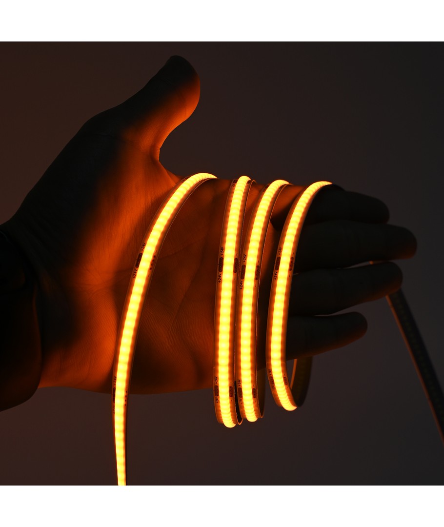 Enkeltfarvet orange COB LED strip med 320 LED'er per meter.