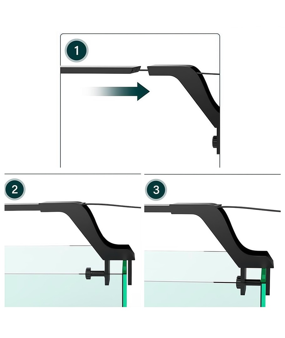 Monteres enkelt på kanten af akvariet, passer til glastykkelse op til 24mm.