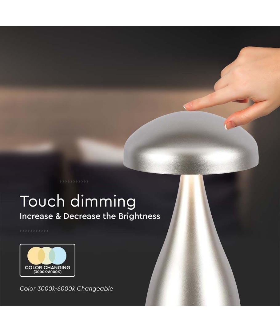 Med dimensionerne på 220 x Ø120 mm, er denne bordlampe kompakt nok til let at flyttes rundt, mens dens stabile base sikrer, at den altid står fast, uanset hvor du vælger at placere den. Det opladelige design eliminerer behovet for stikkontakter tæt på, hvilket gør den yderst portabel.