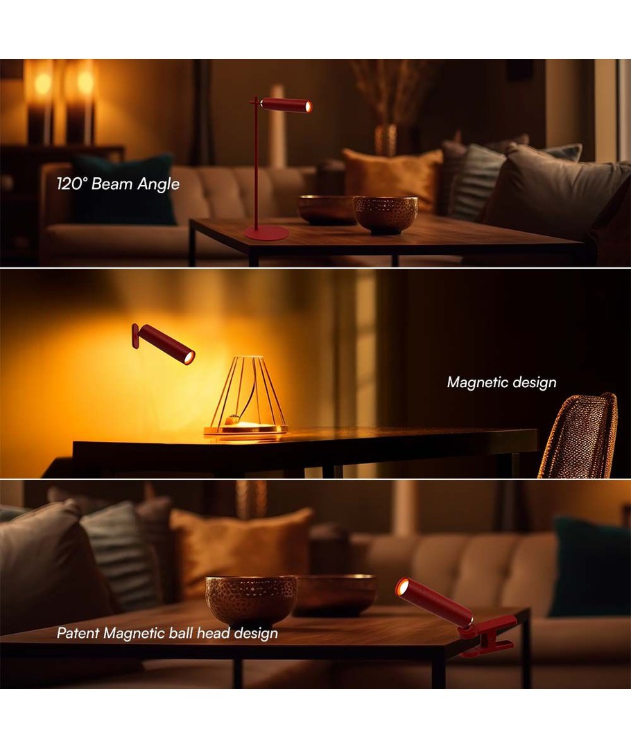 Den magnetiske base gør det nemt at placere lampen præcis, hvor du ønsker det. Med det robuste design og en betagende rød hus, bliver bordlampen en dekorativ tilføjelse til ethvert rum.