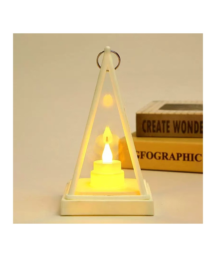 Design og Dimensioner:Lanteren er designet med en trekantet form og kommer i en neutral hvid farve, der gør den nem at integrere i enhver indretning. Den har en kompakt størrelse, hvilket gør den fleksibel i placeringen. Med indbygget lyskilde er der ingen bekymringer om ekstra tilhørende lyskilder.