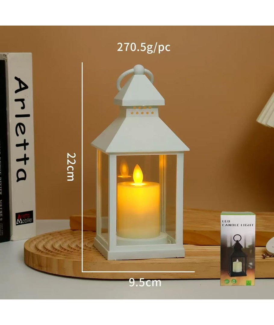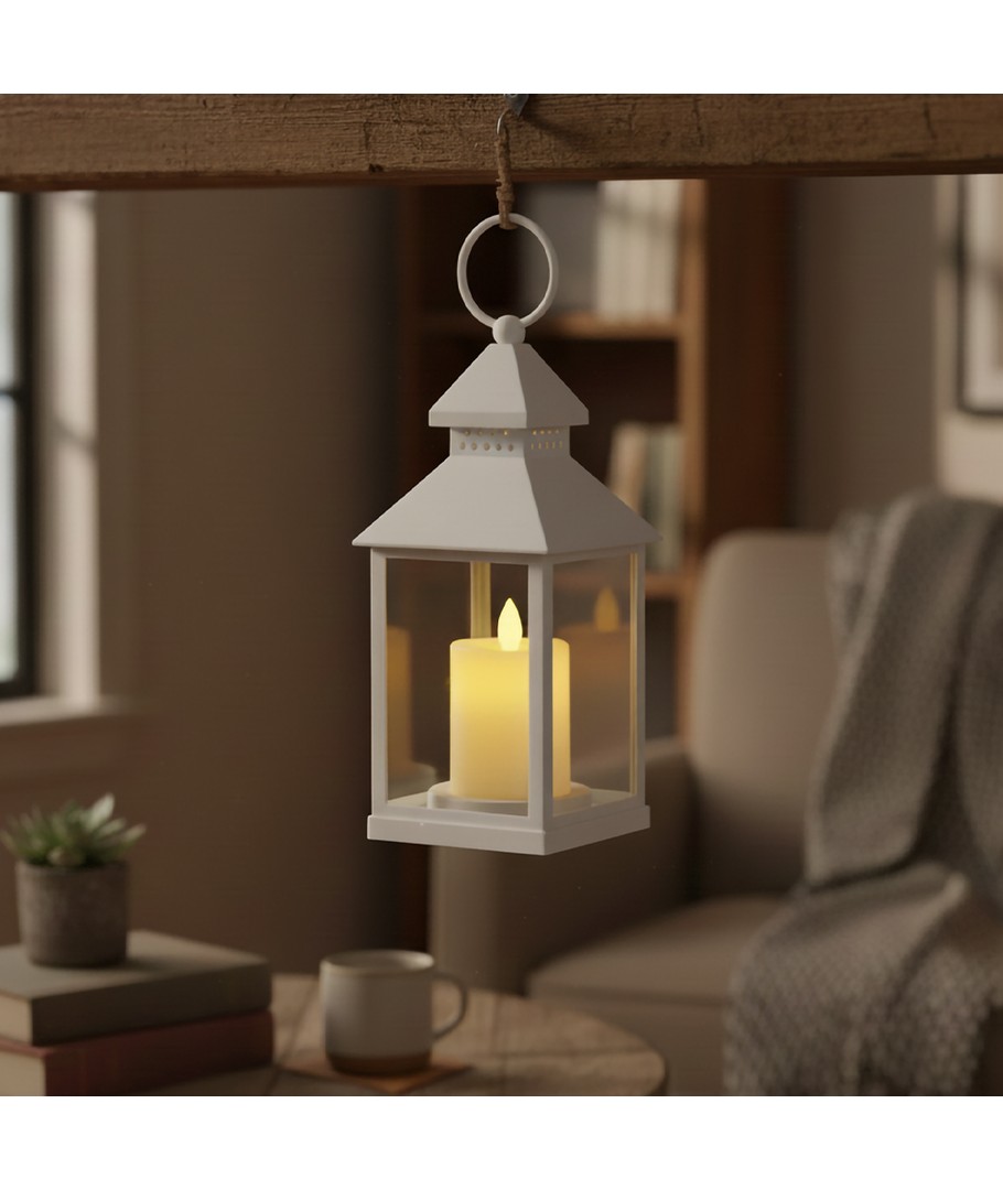 LED lanterne med flammeeffekt i hvid til både indendørs og udendørs brug.