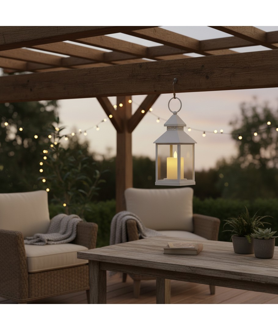 Denne lanterne er en ideel løsning, der kombinerer stil og funktionalitet, og kan placeres overalt, hvor du ønsker et strejf af varme og hygge. Med batteridrift sikrer den fleksibilitet uden behov for et strømkabel.