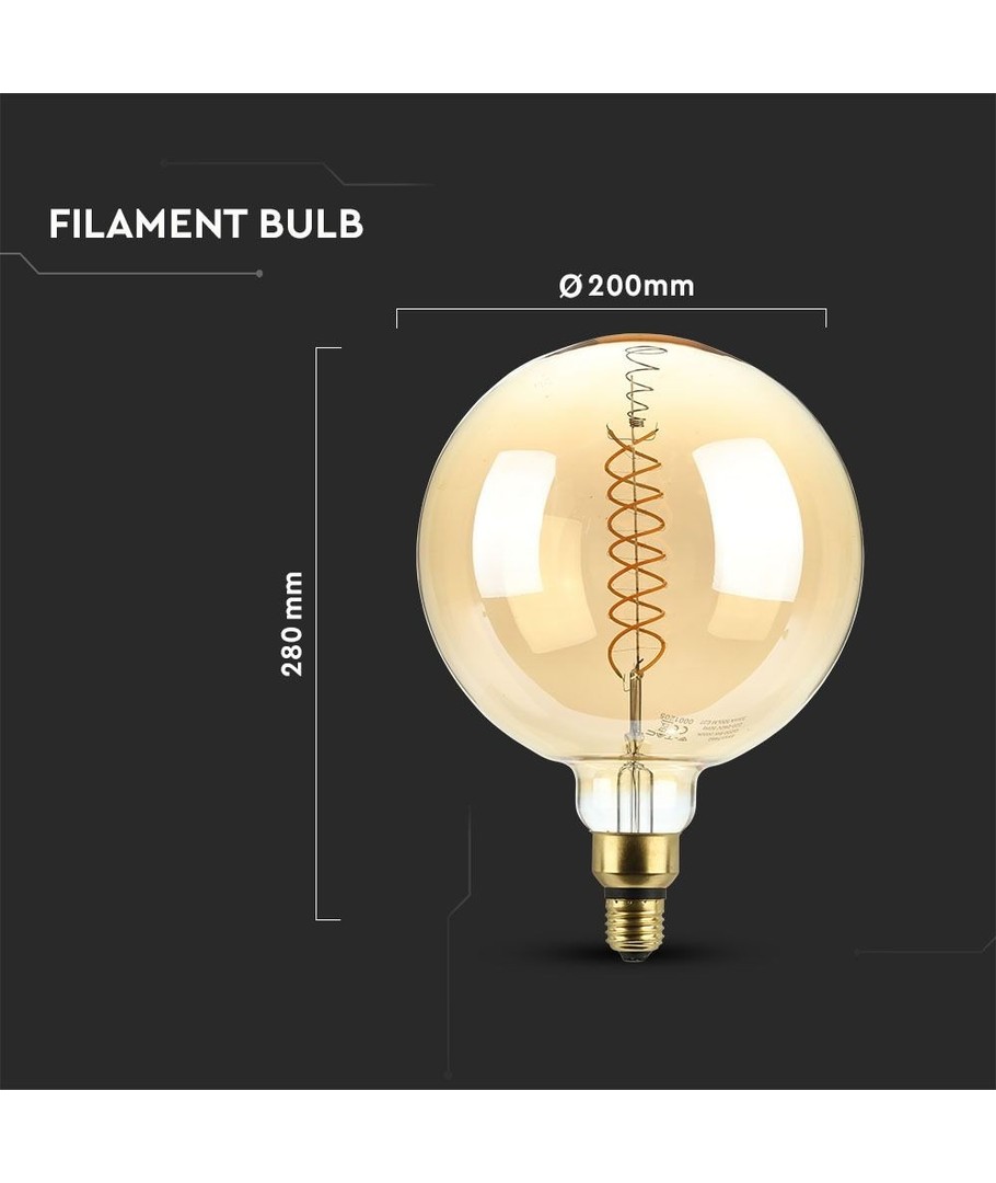 Dekorativ kæmpe globepære fra V-Tac. Pæren er STOR og kan sagtens bruges uden lampeskærm.