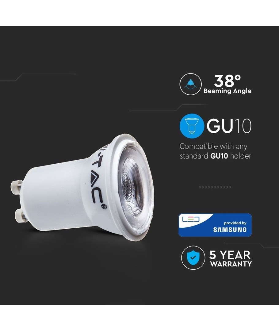 Oplev den nye GU10 2W mini LED spot, der tilbyder fremragende lyskvalitet og energieffektivitet i en kompakt størrelse. Med en effekt på kun 2W erstatter denne LED spot en traditionel 15W pære, hvilket gør den til et energibesparende valg til dit hjem eller kontor.