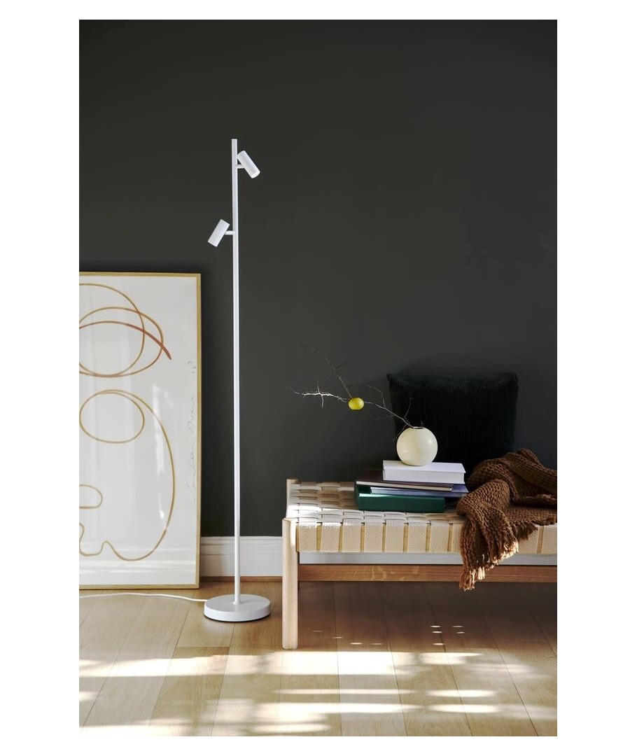 Den leveres i en stilfuld hvid farve, der nemt kan integreres i enhver indretningsstil. Omari gulvlampens elegante og slanke design gør den let at placere i forskellige rum uden at tage for meget plads.