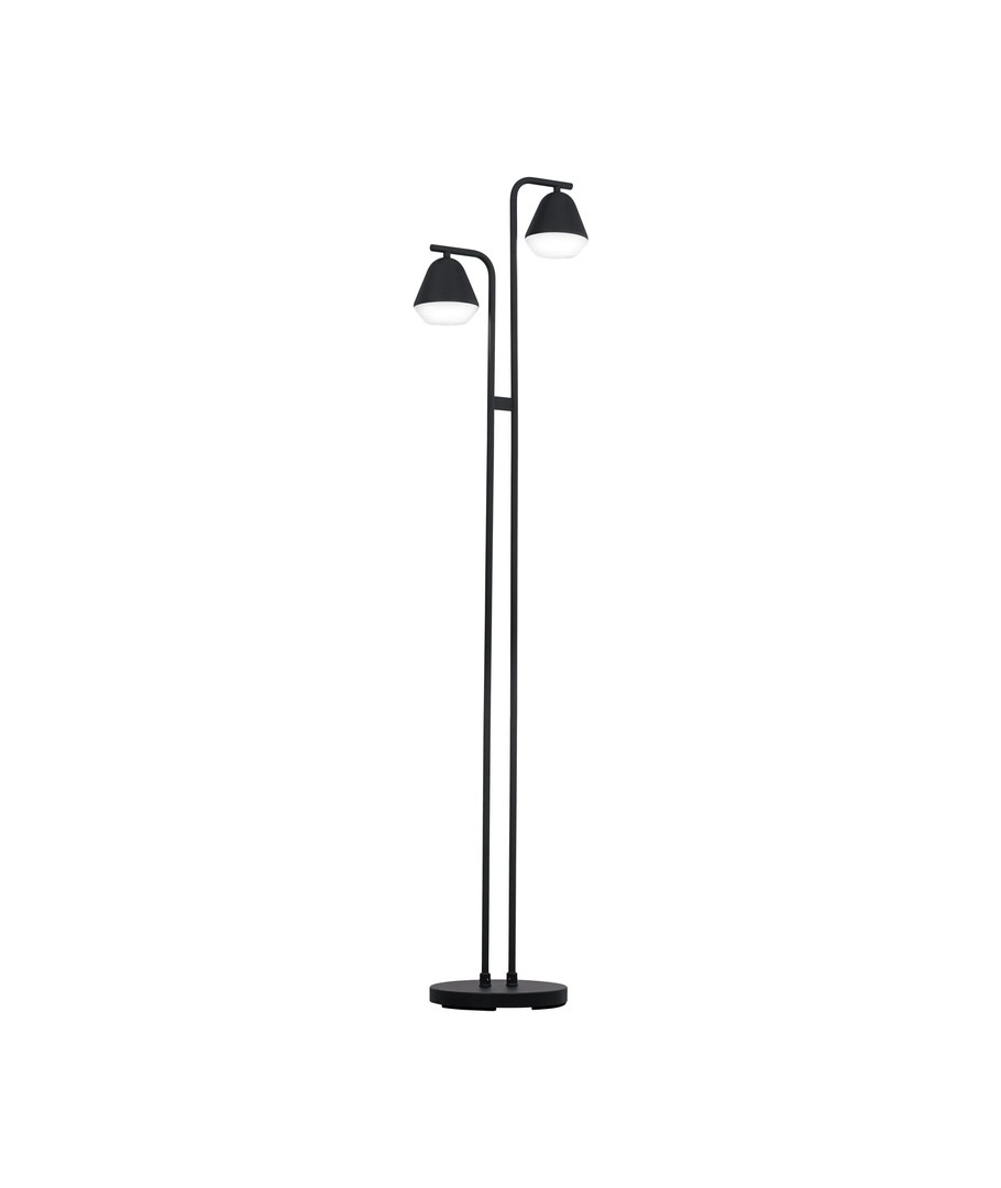 Selve fatningerne er hver omgivet af en smuk, pæreformet skærm i to dele: En øvre krop af sort stål, og en skærm i bunden af hvid, satineret plastisk.