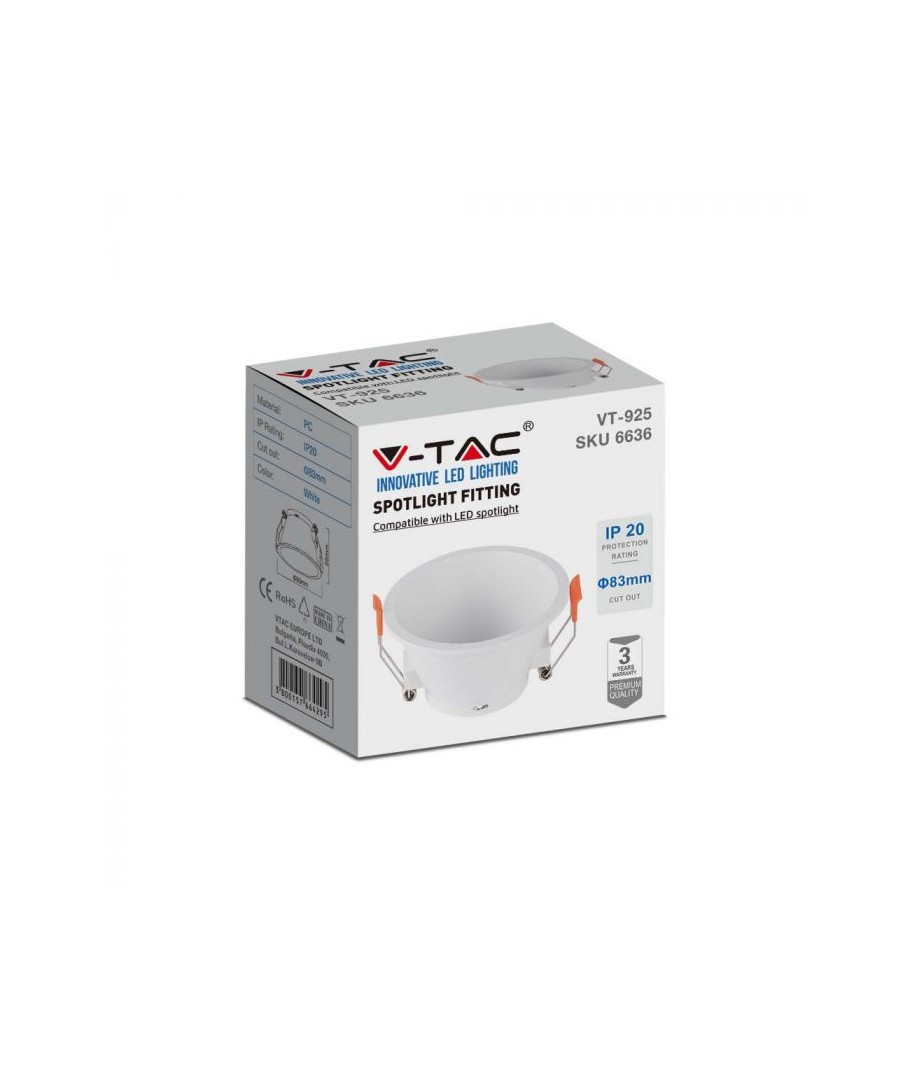 Hul: Ø16 cm, Mål: 21 cm, passer til V-Tac 12W LED indbygningspanel