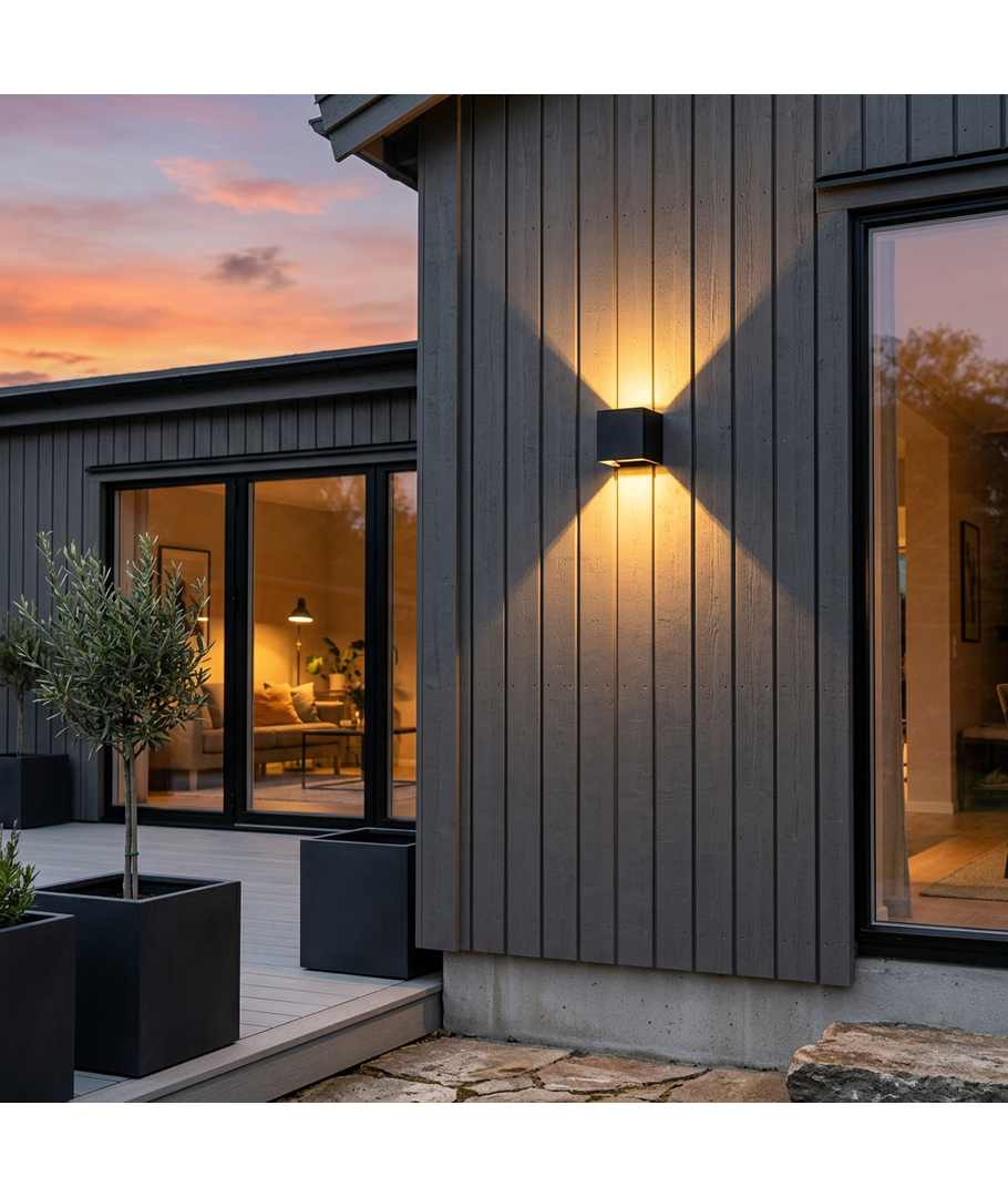 Cubic Pro er en moderne væglampe, der giver et fantastisk lys på både facaden og indendørs. Det smarte ved lampen er, at den lyser både op og ned, og du kan selv indstille præcis, hvordan lyset skal se ud.