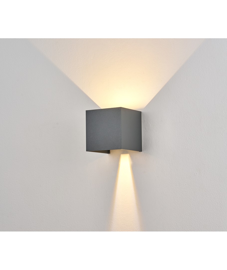 Denne grå op/ned væglampe fra danske LEDlife, er designet med fokus på æstetik og kvalitet. Væglampen har justerbar spredning (10-120 grader) i både top og bund. Denne funktion er yderst populær fordi at det ofte højner bygningens udseende og giver et moderne og elegante udtryk. Lampen er vandtæt og kan derfor bruges både inde og ude.