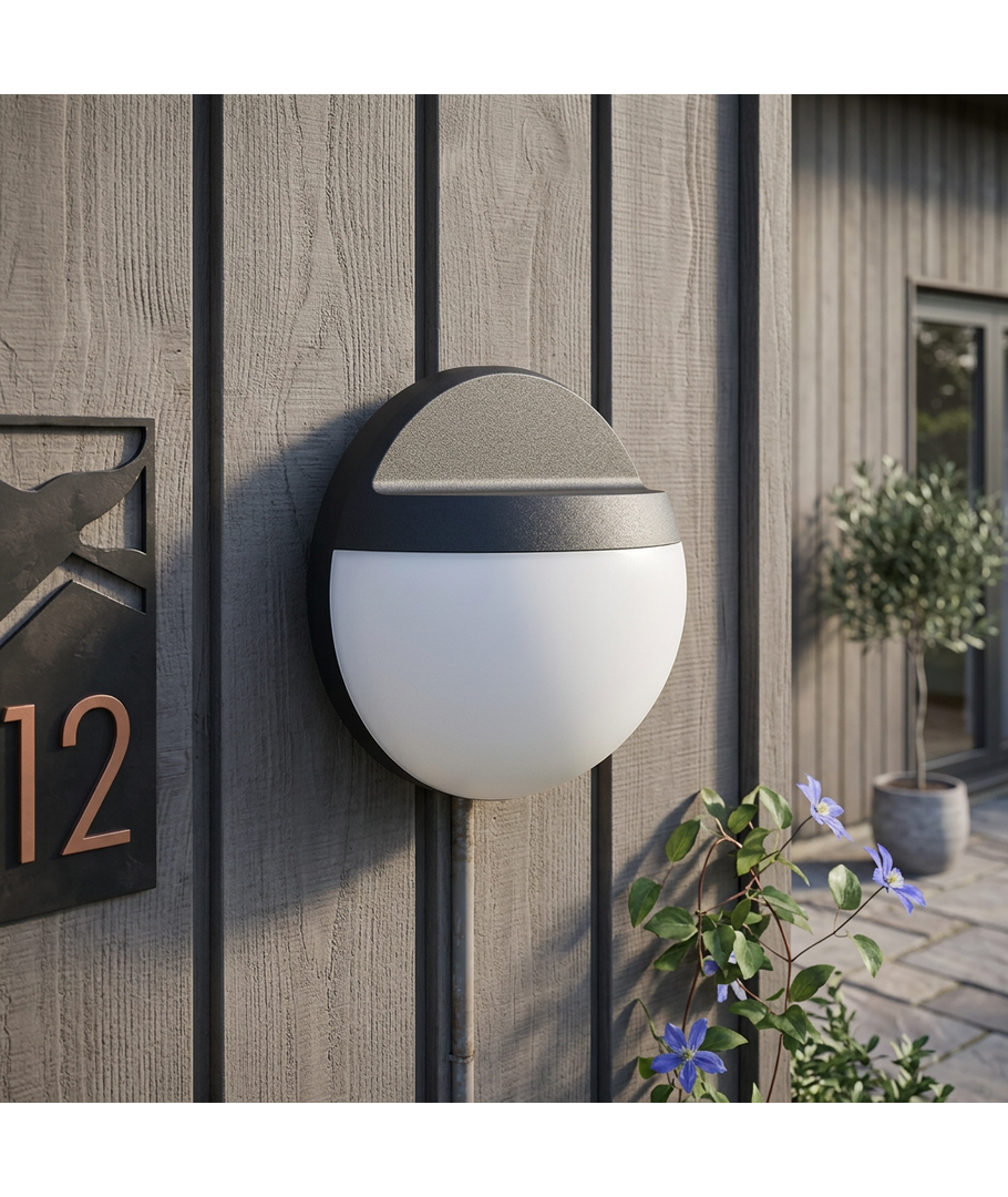 Oplev en kombination af stil og ydeevne med denne 12W LED væglampe. Designet i en tidløs rund form og klassisk sort farve, passer lampen perfekt ind i enhver udendørs indretning.