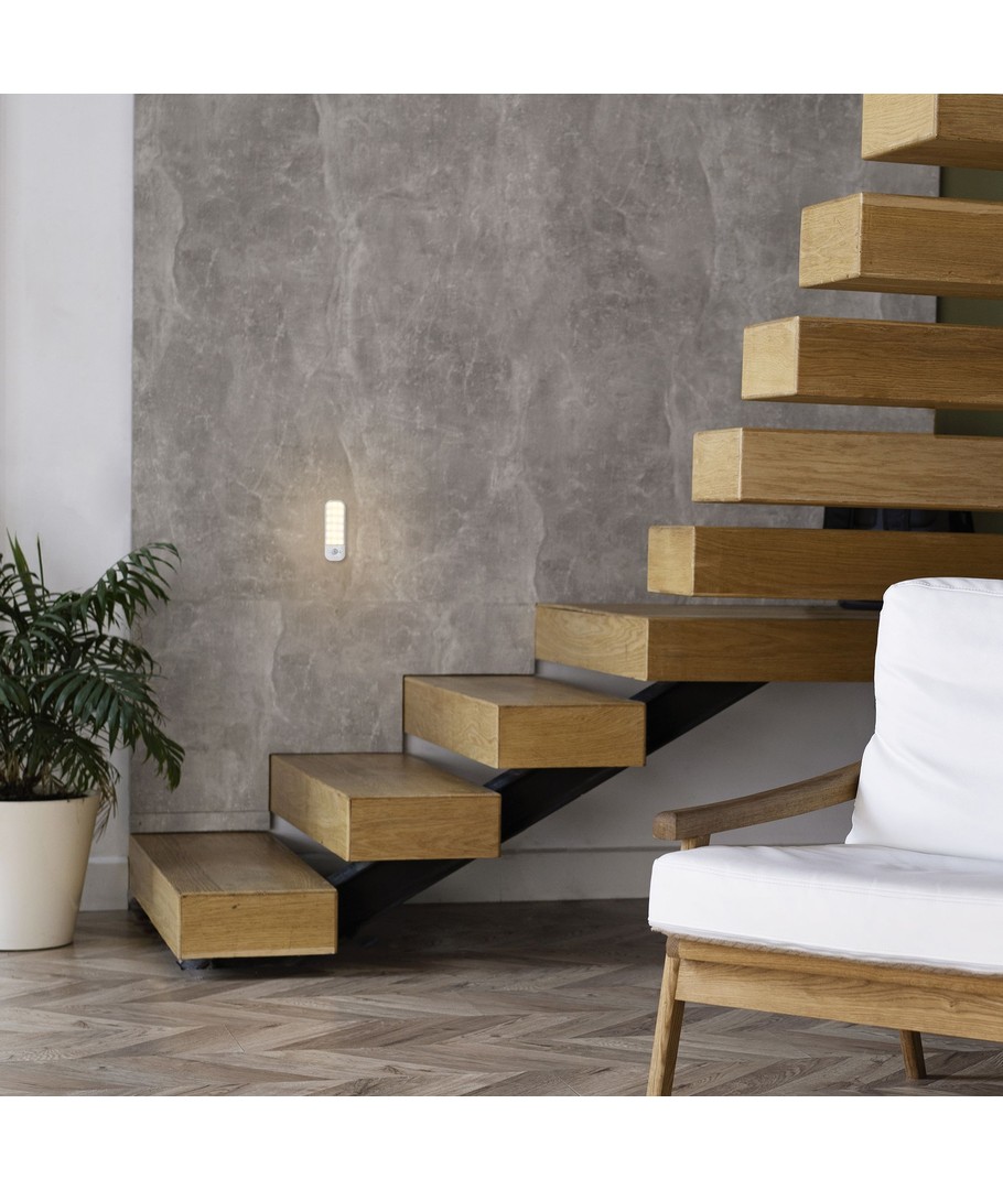 Denne LED lampe er udstyret med en PIR bevægelsessensor, som automatisk aktiverer lyset ved bevægelse. Det er et ideelt valg til områder som gangarealer eller skabe, hvor man har behov for belysning uden at tænde for en kontakt.