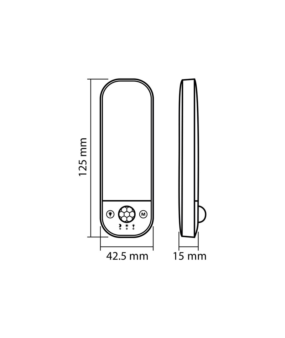 Med sine kompakte dimensioner på 125 x 15 x 43 mm, er denne LED lampe diskret og nem at installere. Den er designet til indendørs brug (IP20), så den er ikke modstandsdygtig over for vand, men er perfekt egnet til tørre områder.