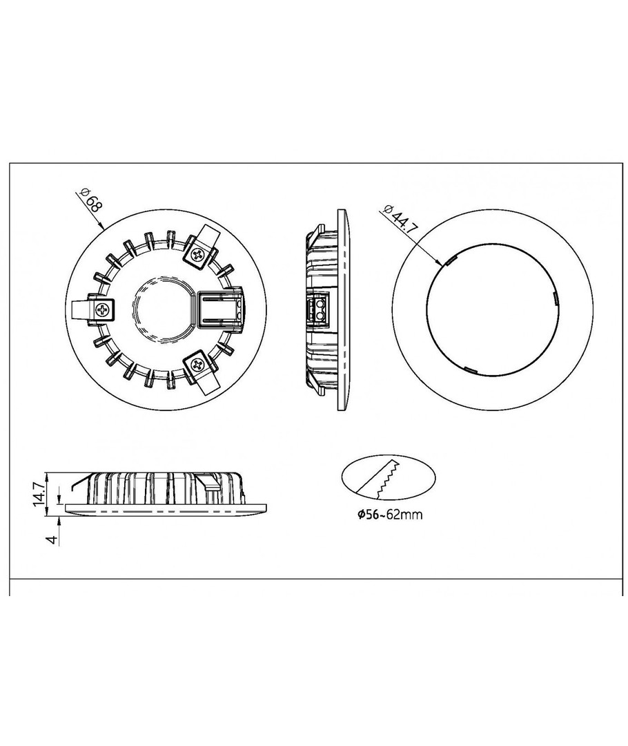 Med et dimensionelt mål på 14,7 x Ø68 mm og en IP54-klassificering, er dette spot robust mod fugt og vandstænk på fronten, hvilket gør det ideelt til steder, der kræver ekstra beskyttelse.