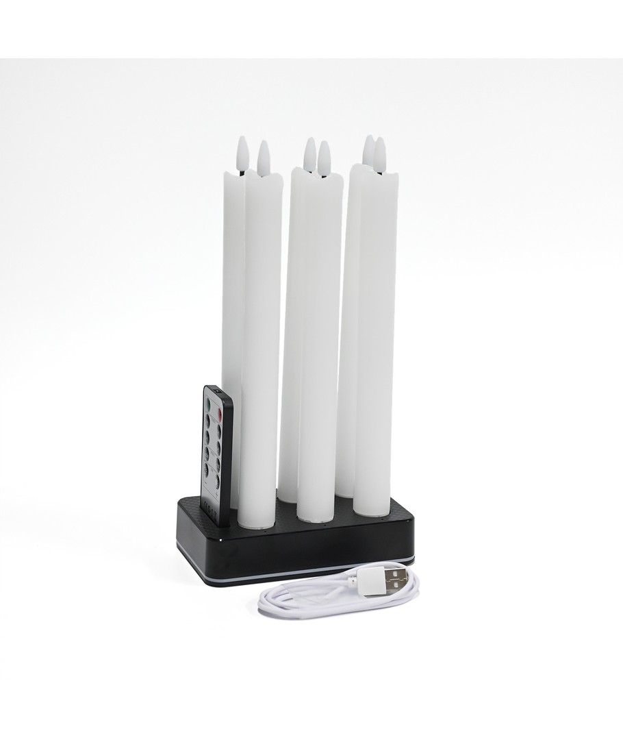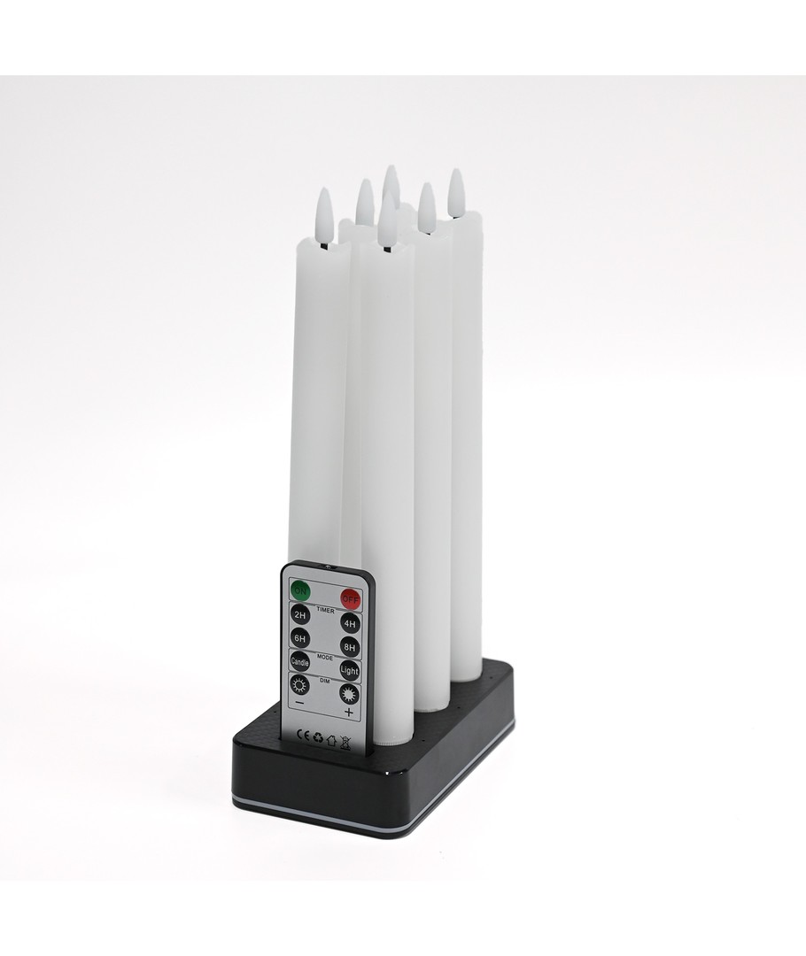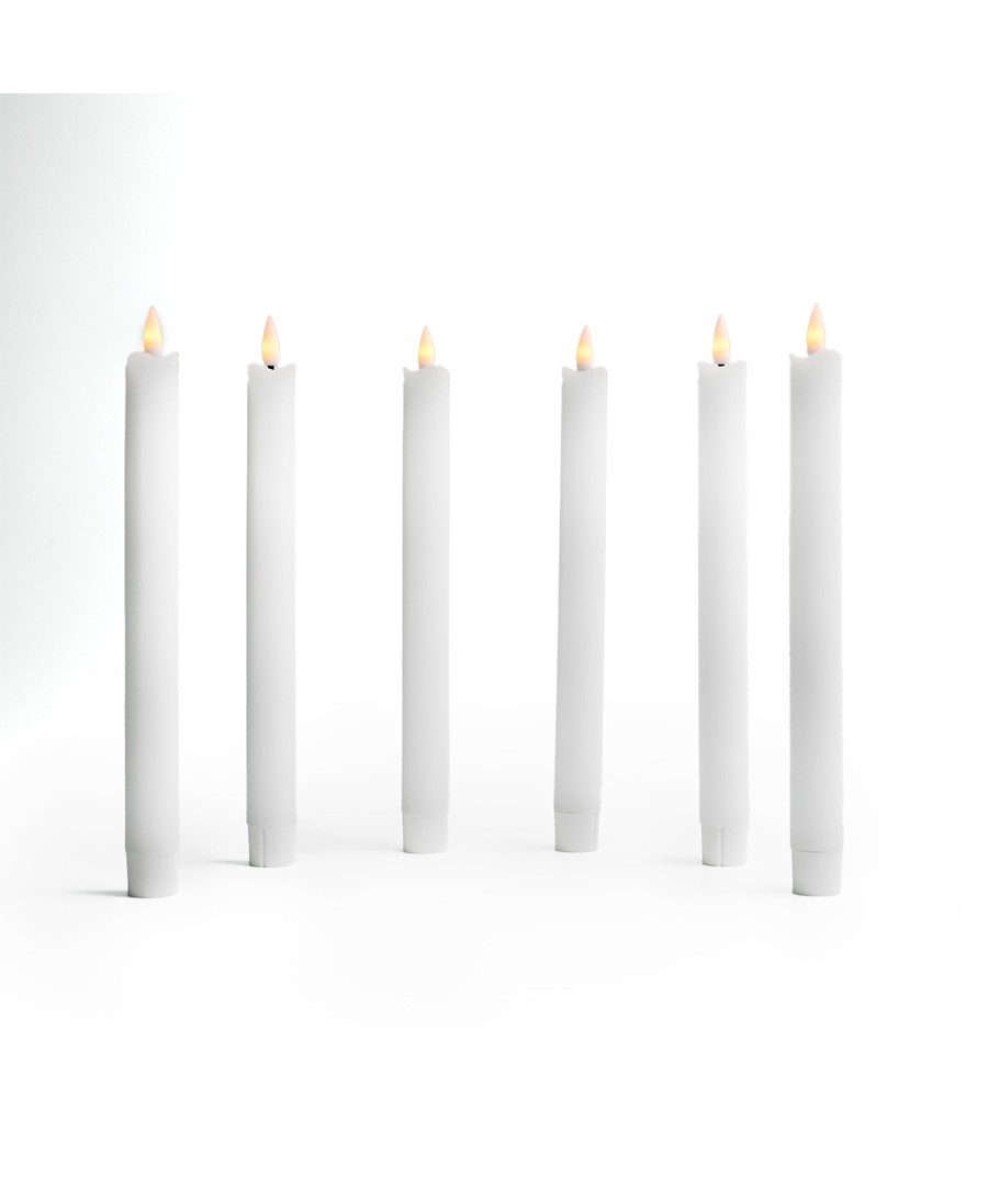 Oplev den hyggelige atmosfære fra levende lys uden risikoen for åben ild med vores 6-pak hvide LED stearinlys med flammeeffekt. Disse elegante kronelys passer perfekt i dine almindelige lysestager og tilbyder en afslappende belysning i ethvert rum.