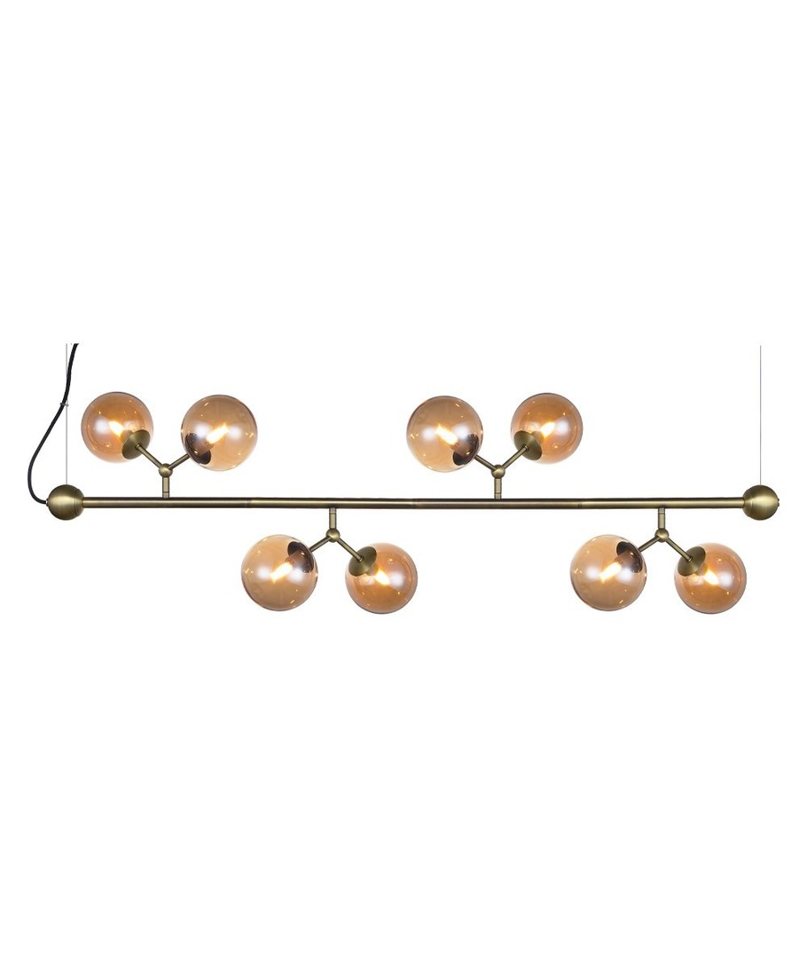 Denne lampe er en del af den populære Atom-serie og er udformet i en stilfuld oxid finish, der giver et sofistikeret udtryk. De otte glaslamper skaber et smukt lysspil, der kan tilføje charme og karakter til ethvert rum.