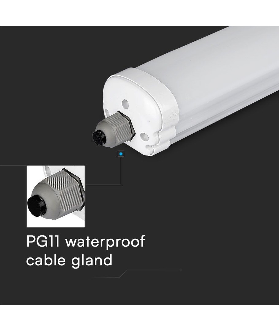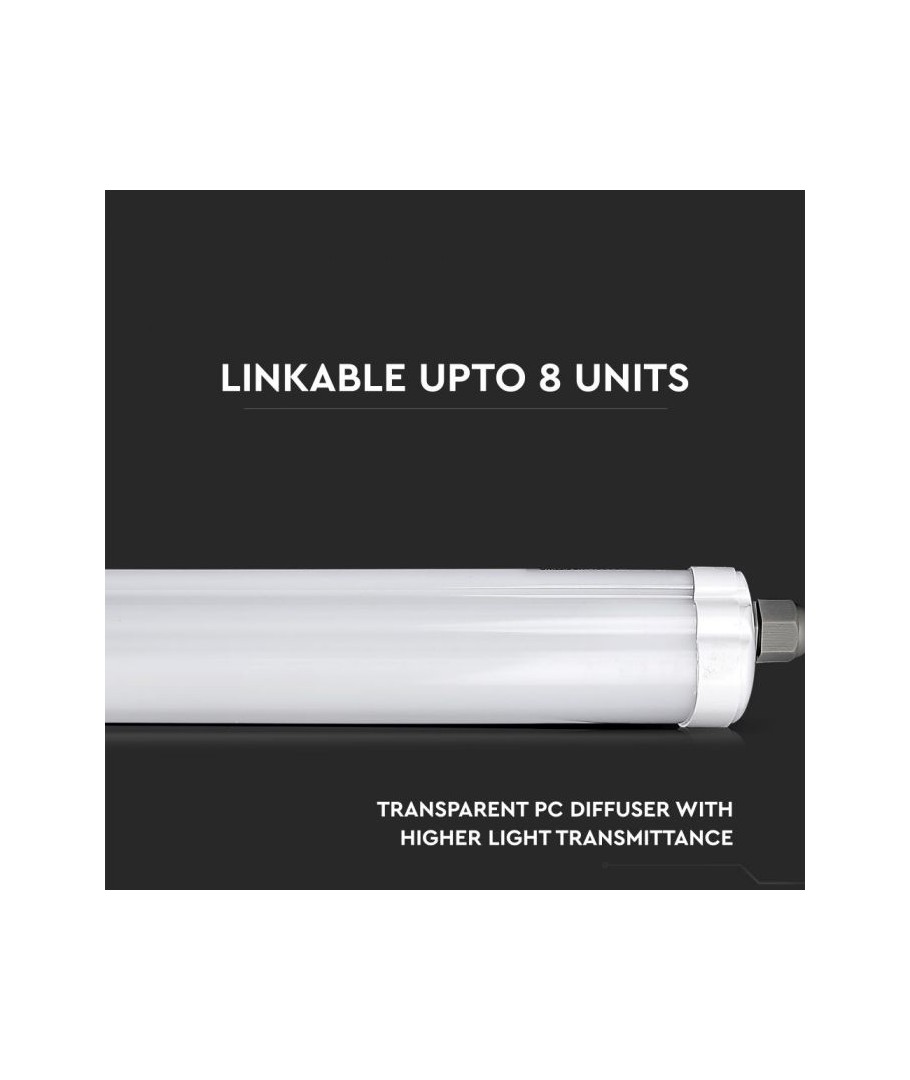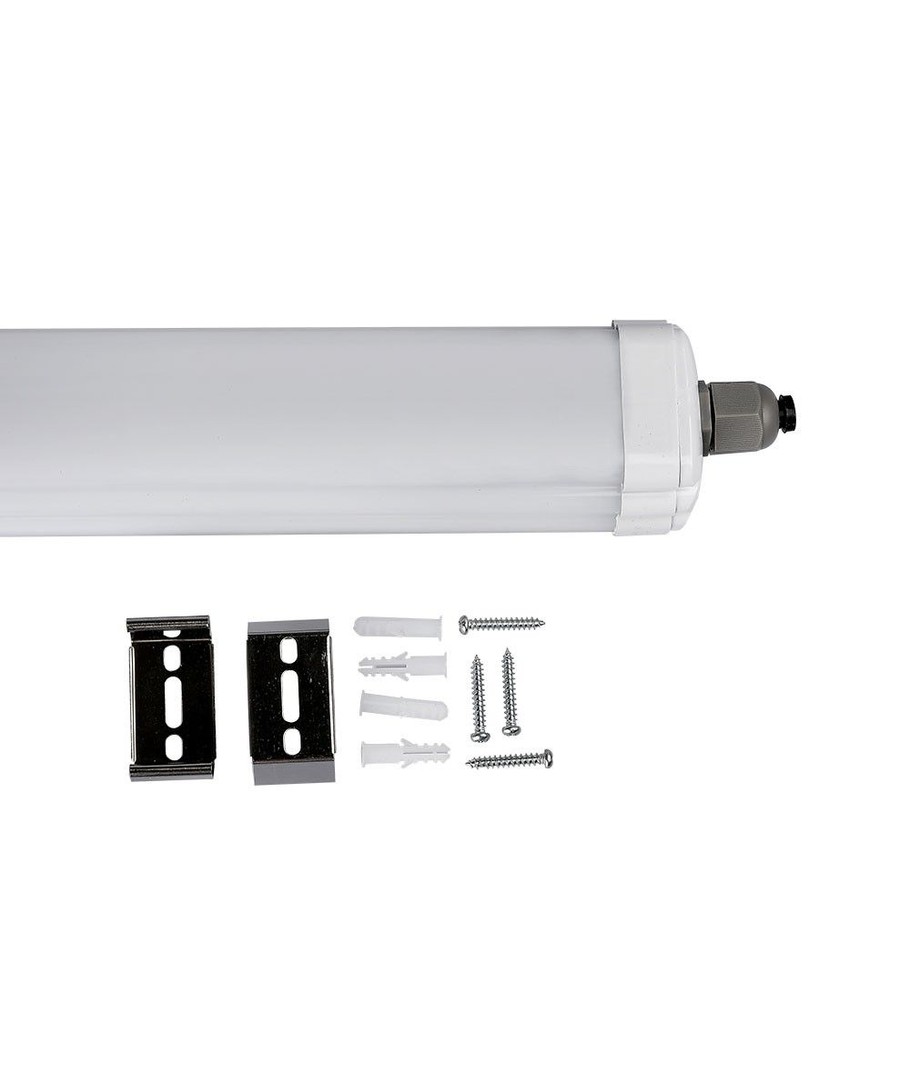 V-Tac vandtæt 36W komplet LED armatur er en effektiv og holdbar belysningsløsning designet til at opfylde kravene til både kommercielle og industrielle miljøer.
