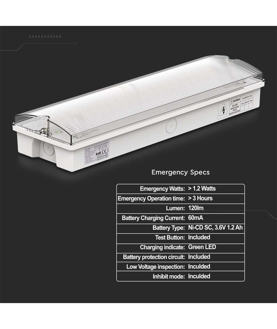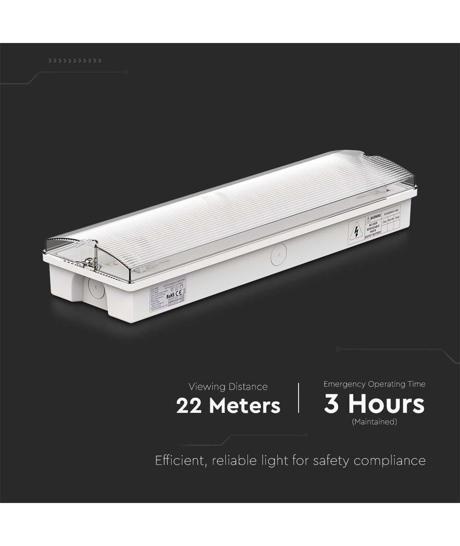 Oplev pålidelighed og sikkerhed med vores nødbelysningsløsning, der også fungerer som et Exit skilt. Med en effekt på 3W og inkluderet batteri, er du sikret en stærk og langvarig løsning, der er ideel til både indendørs og udendørs miljøer.