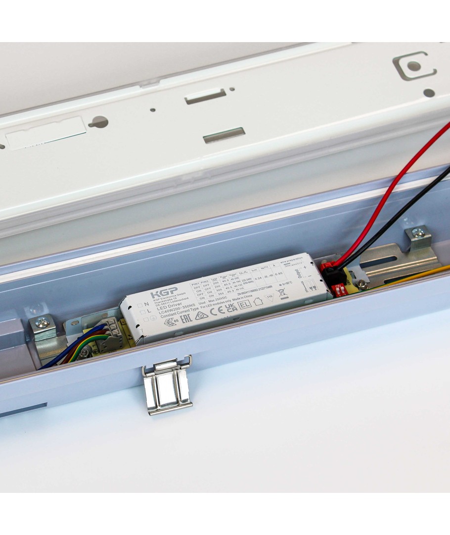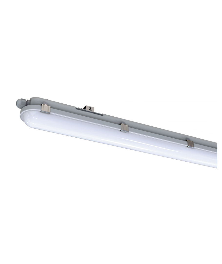Dette 150 cm LED armatur tilbyder en kraftfuld og alsidig belysningsløsning med 60W effekt til tilslutning på 230V forsyning. Med en lysstyrke på 7800 lumens og en høj spredning på 120 grader sikrer det en jævn og effektiv fordeling af lyset i ethvert rum.