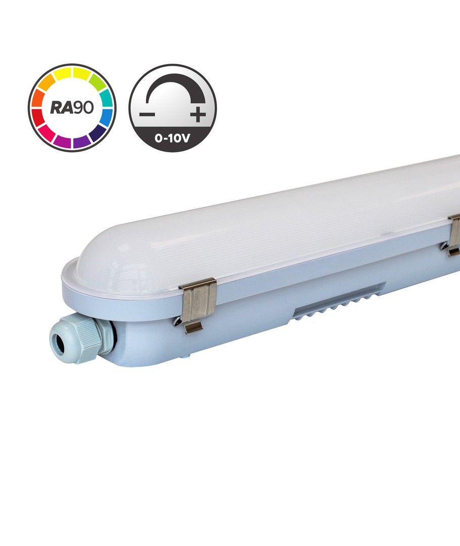 Dæmpbart LED armatur i 120 cm længde med høj farvegengivelse RA90, et højkvalitets lysarmatur, der er perfekt til ethvert miljø, hvor fremragende farvegengivelse er essentiel.
