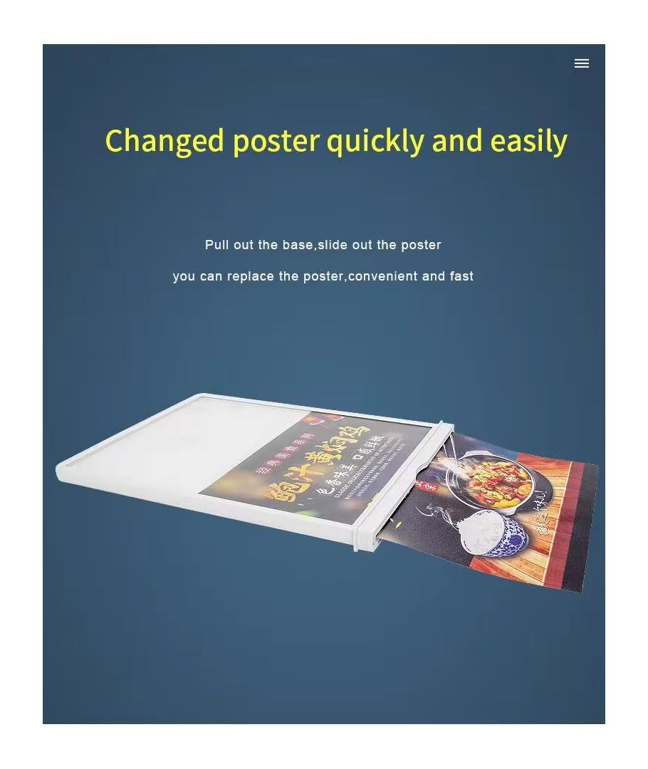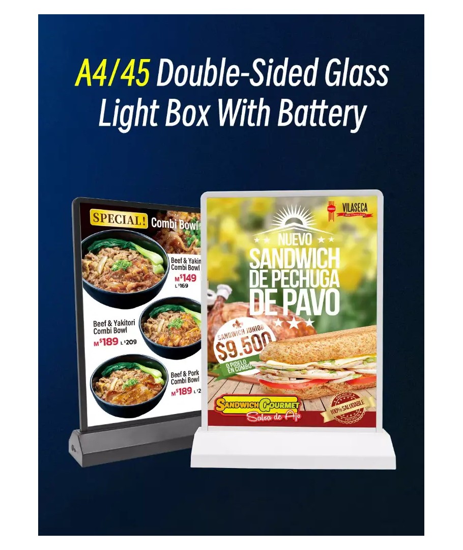 Med vores Lysramme A5 størrelse - Dobbeltsidet menukortholder får du en stilfuld og funktionel løsning til at fremvise dine budskaber på den bedst mulige måde.
