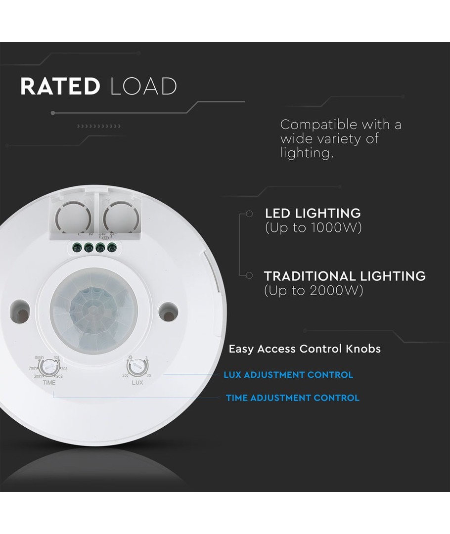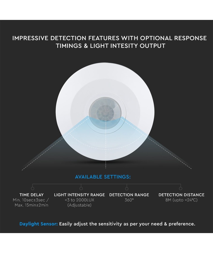 V-Tac Bevægelsessensor 360° PIR er det ideelle valg for dem, der ønsker en smart og energieffektiv løsning til lysstyring indendørs.