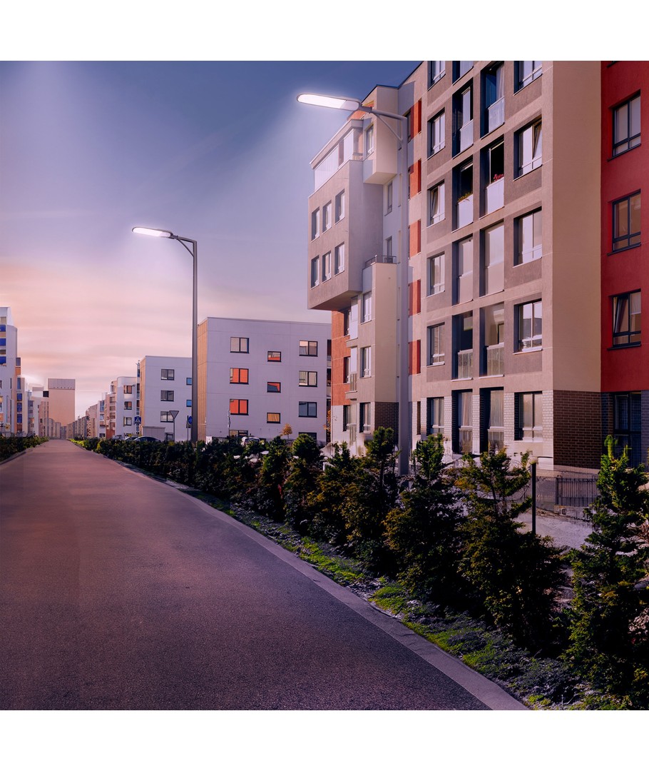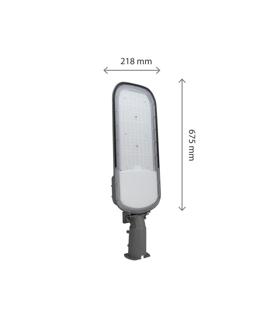Denne kraftfulde 150W LED gadelampe er designet til effektivt at oplyse udendørs områder, med en lysstyrke på 20250 lumens og en bred spredning på 145/75 grader. Det sikrer en jævn og ensartet fordeling af lyset, hvilket er ideelt til at skabe klare og sikre omgivelser.