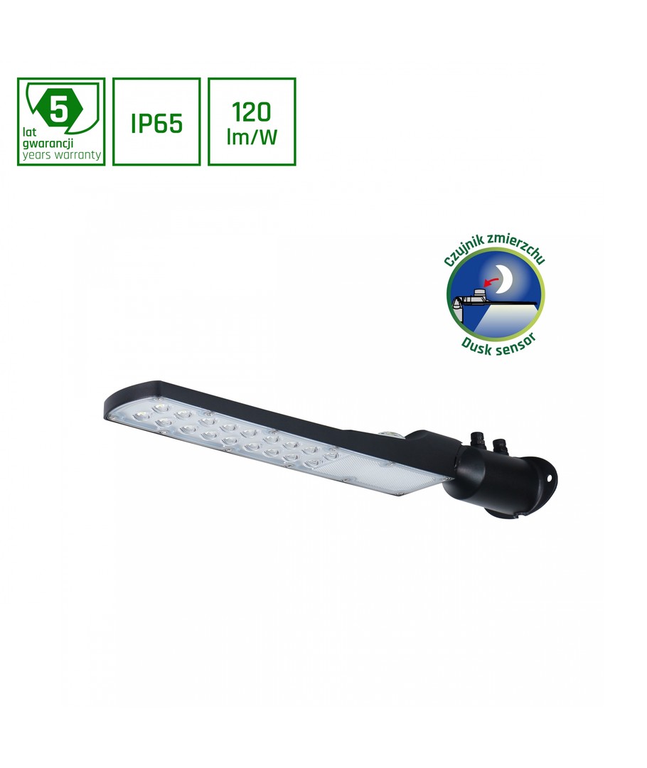 Vælg denne skumrings LED gadelampe for at opnå en optimal balance mellem lysstyrke, holdbarhed og energieffektivitet. Perfekt til gader, indkørsler og parkeringspladser, hvor pålidelig belysning er et must.