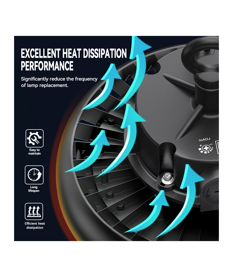 Holdbarhed og Garanti: Med LED-lamper af den højeste kvalitet og en designet levetid på op til 50.000 timer, sikrer denne high bay minimal fald i lysstyrke. Du kan stole på holdbarheden, understøttet af en 5 års garanti.