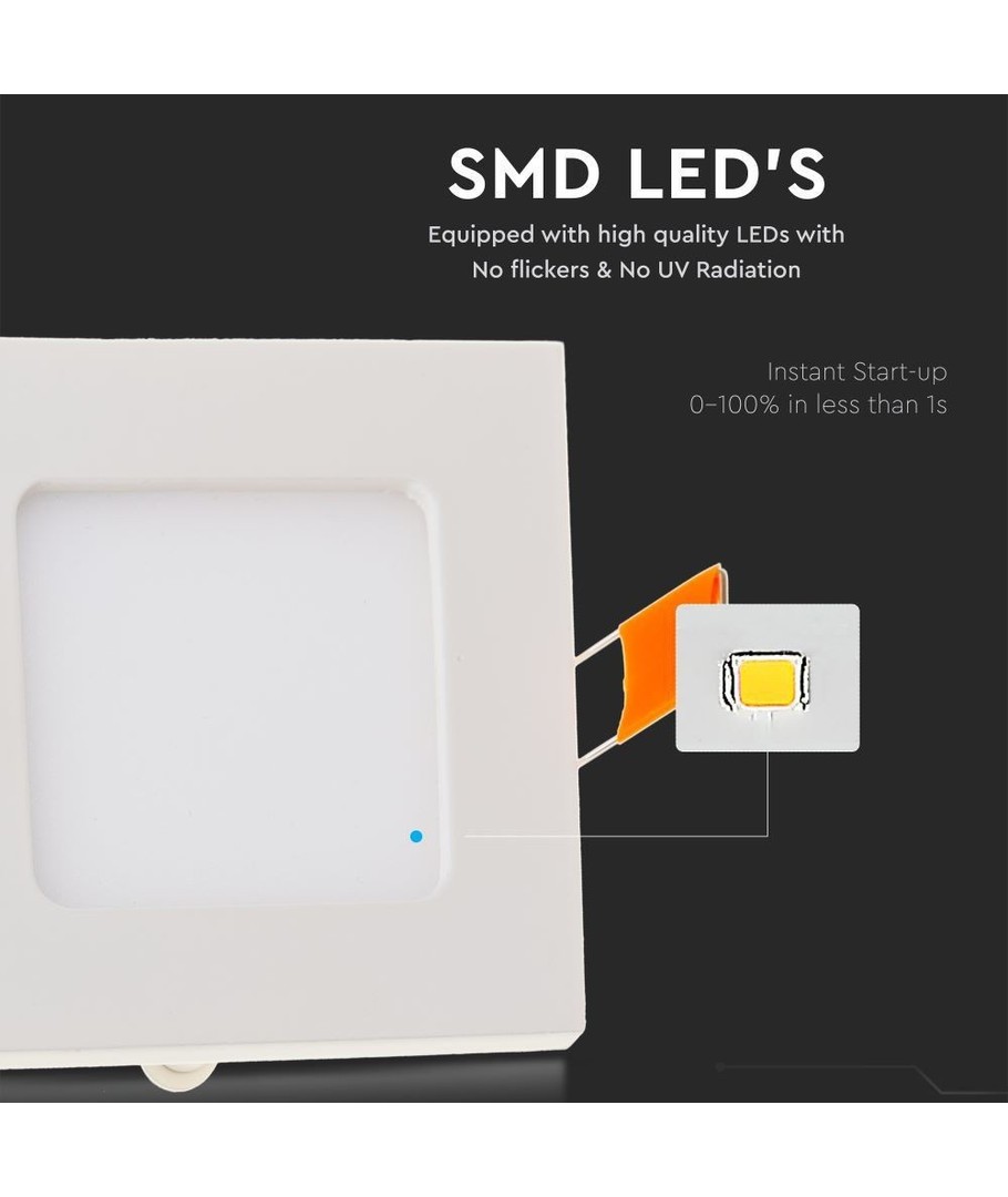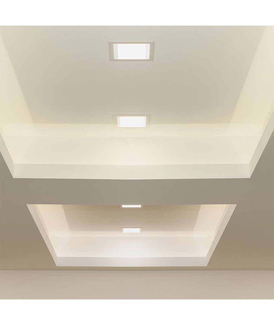 Panelets mål er 22,5 x 22,5 cm, og det kræver et hul på 20,5 x 20,5 cm for korrekt indbygning. Med en dybde på 12 mm passer det perfekt i moderne design. Det er dog vigtigt at bemærke, at panelet har en IP20 klassificering, hvilket betyder, at det ikke er vandresistent.
